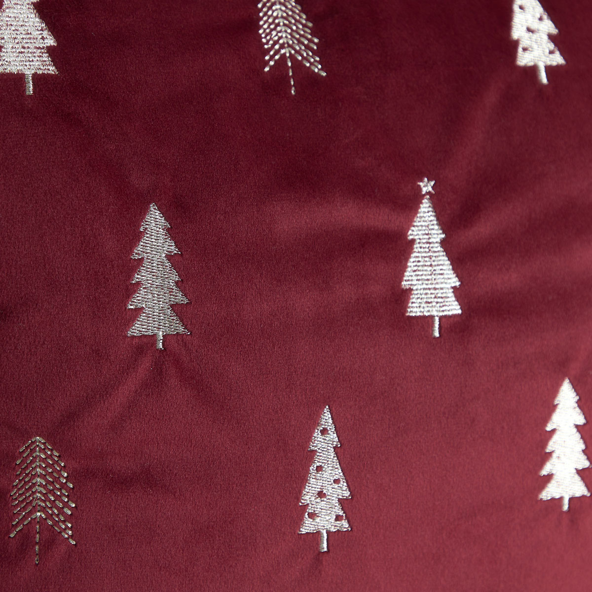 The ARBA cushion cover is made of material in a burgundy shade – it will go well with bright colors as well as white and classic black. It is decorated with simple Christmas trees, which have been embroidered with gold thread.
