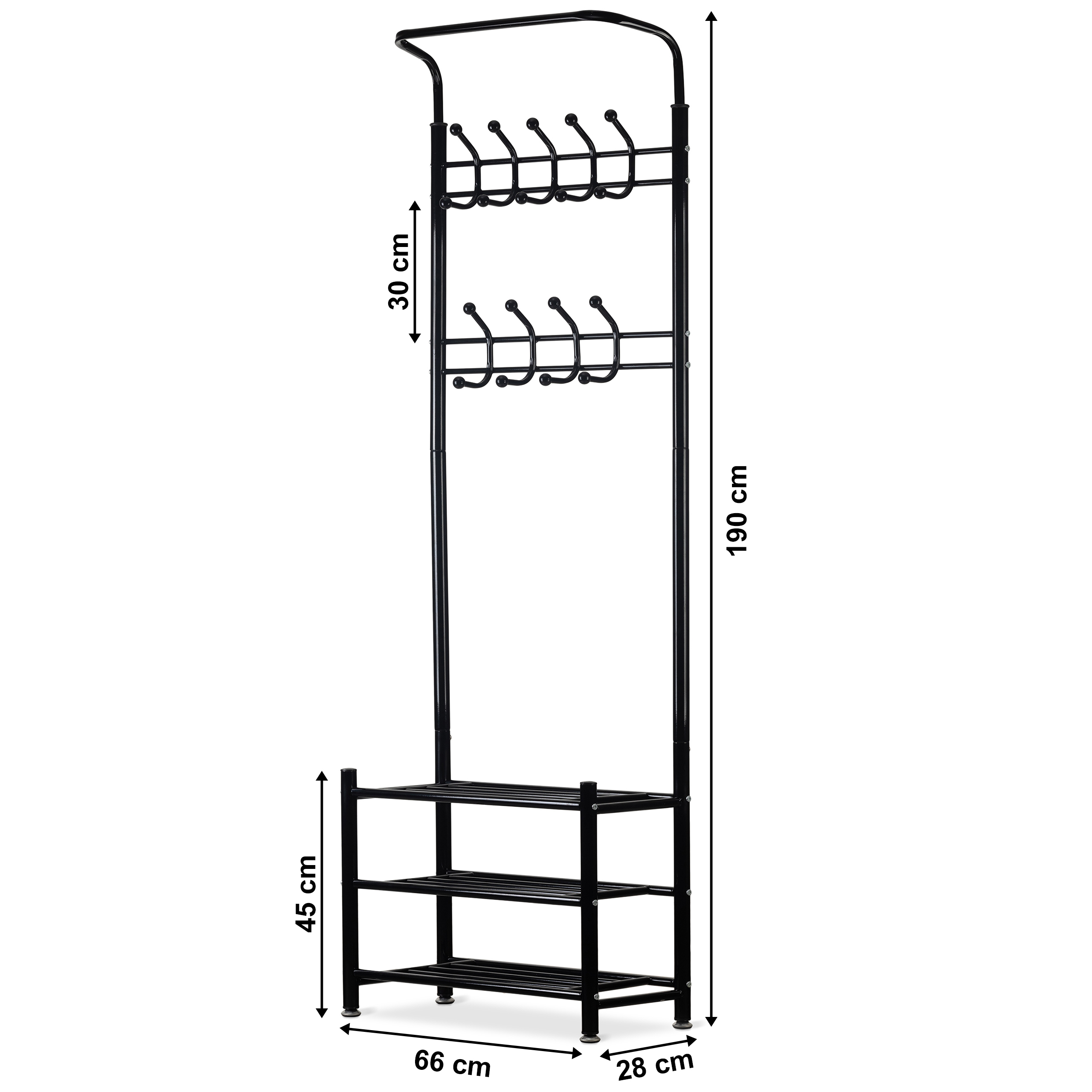 In the upper part there are two rows with 18 hangers, thanks to the large number of hooks it will be perfect for home wardrobes, offices or waiting rooms.