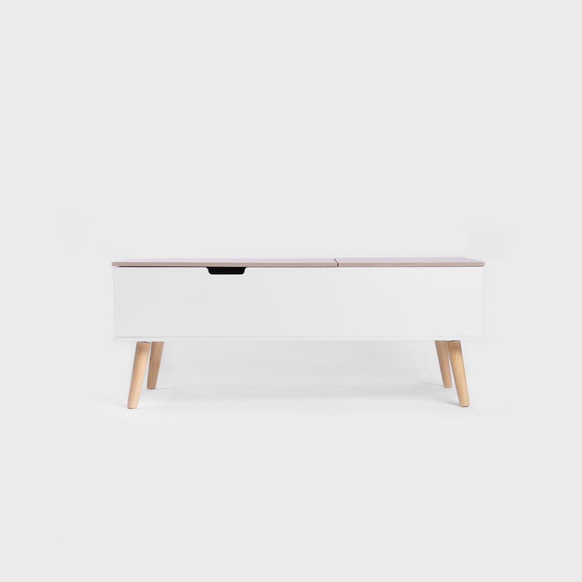 ANZABI coffee table is a combination of modern design and practicality. The white top combined with the natural wood of the legs gives the interior lightness, and the lift-up top allows comfortable use while relaxing. You can easily store the little things you want close at hand while keeping things tidy.