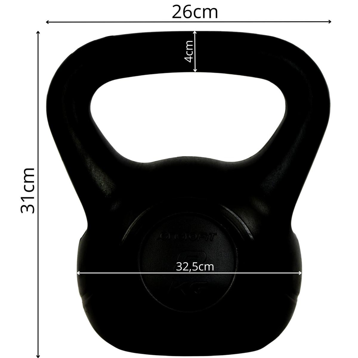 - Dimensions approx: circumference 65 cm / handle 17.5 cm (max length measured from inside) / handle diameter 4 cm / max handle length measured outside 25.5 cm / height of the whole weight 31 cm / clearance 8 cm.