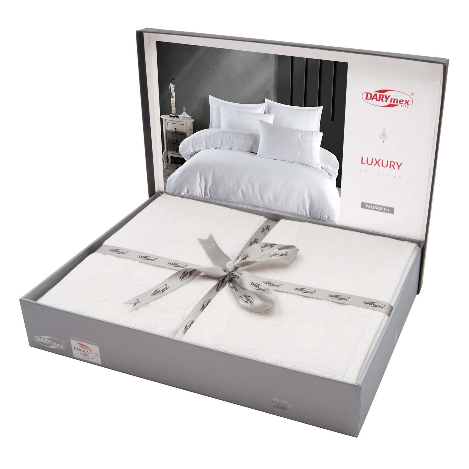 Luxurious, elegant bedding set, made of high quality cotton satin woven with NE 40/1 yarn and 210TC density. This fabric is very smooth, soft and pleasant to the touch. The comforter cover and pillowcases are decorated with strands of wide, decorative guipure. The duvet cover is zippered, and the pillowcases have a hotel tab. This bedding will meet the expectations of the discerning customer looking for a high-end product. It is packed in an exclusive box and can be an extra luxurious gift. The bedding sets are made of OEKO-TEX certified fabrics.