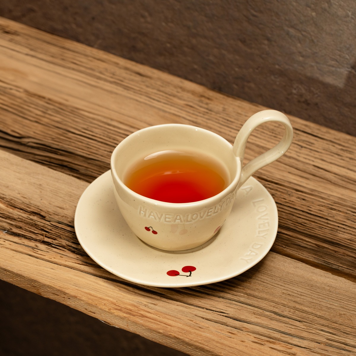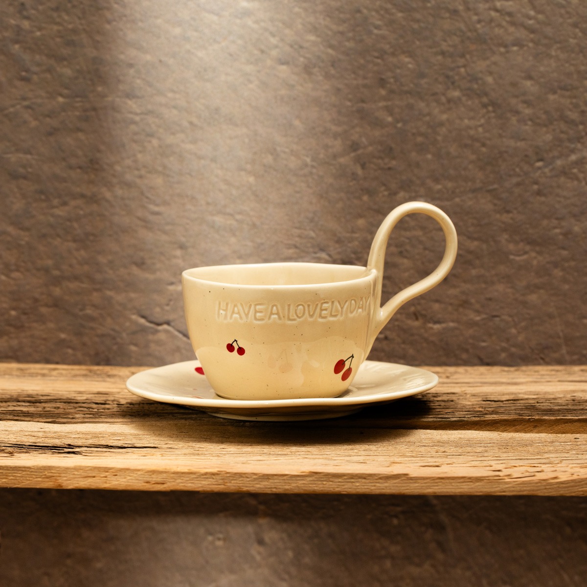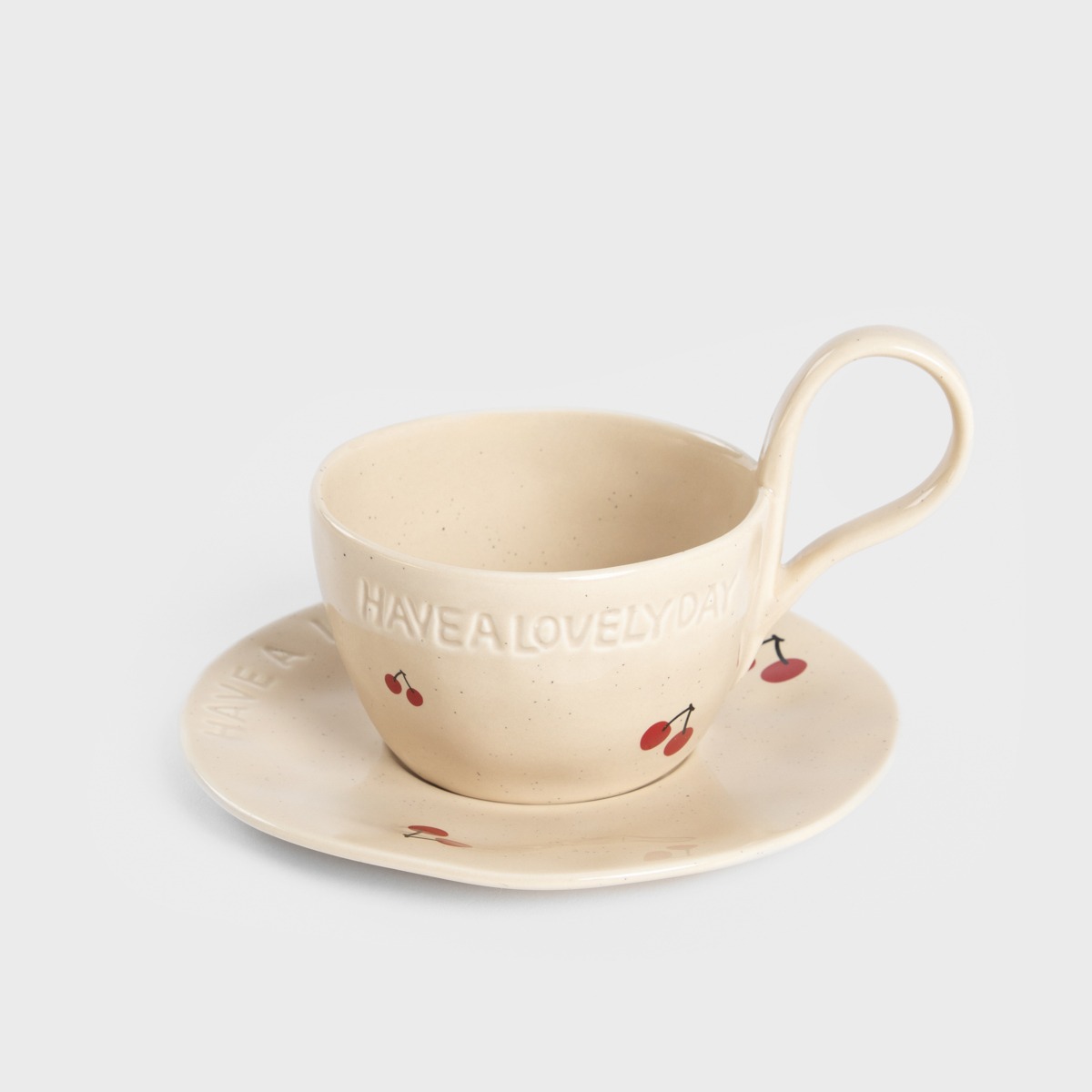 ISERNIA cup with saucer in cherry design 0.2 l Product suitable for food contact. Dishwasher safe and microwave safe.