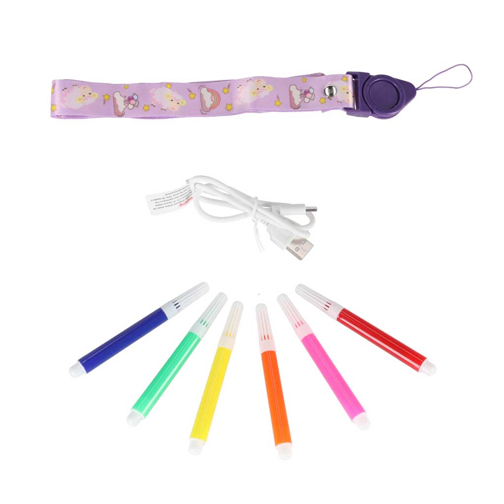 – Set of 6 mini markers (8,5 cm) – red, pink, orange, yellow, green, blue.