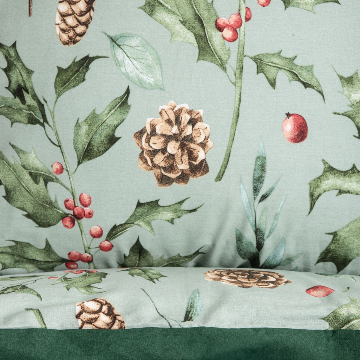 The AURORA cotton bedding delights with its naturalness and calming, atmospheric colors. The pattern of sprigs of mistletoe, holly, pinecones and dark green leaves is associated with the scent of the forest, winter freshness and beautiful Christmas decorations. It is the perfect choice for interior decoration not only for Christmas, but for the entire winter season.