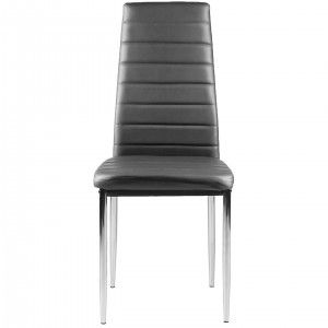 The chairs will fit perfectly with the family table in your dining room and kitchen. Gray upholstery made of soft eco-leather and chrome legs create an interesting combination that makes the chairs look great and fit into any type of interior, adding a unique character to it.