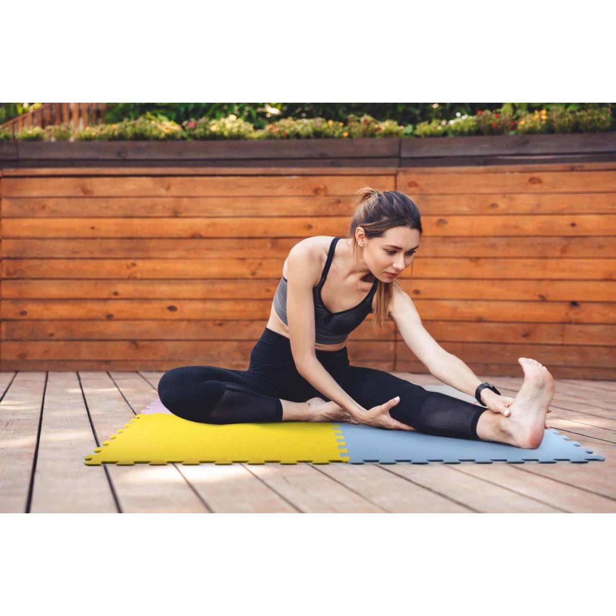 The foam puzzle is stress-resistant and has non-slip properties, ideal for play, yoga, fitness, Pilates, or aerobics.