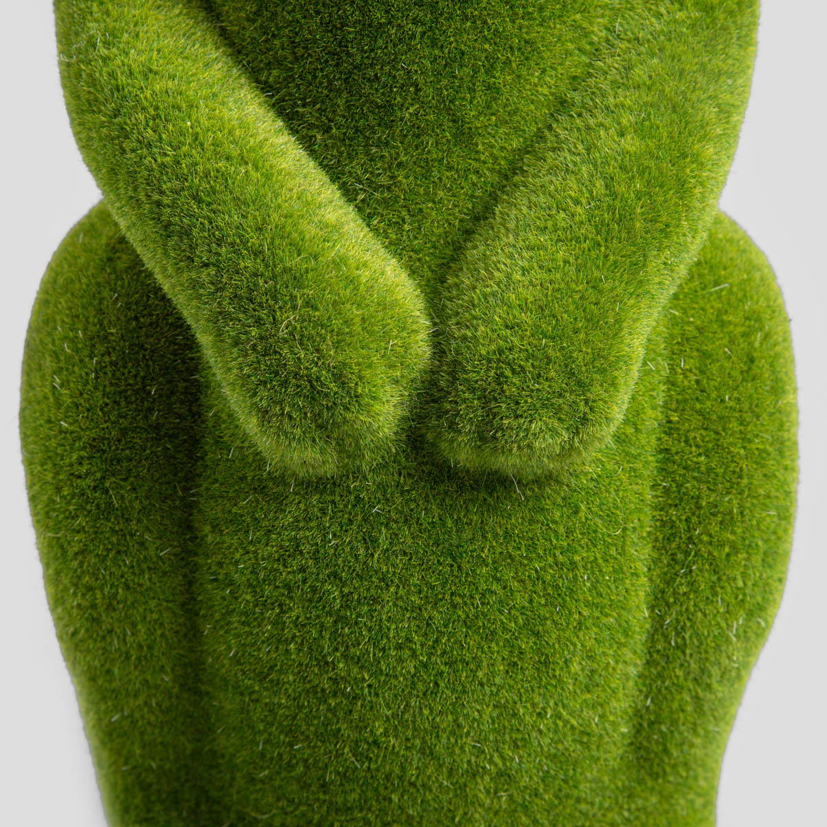 The figurine is made of durable material covered with artificial moss, which gives it a realistic, natural look.