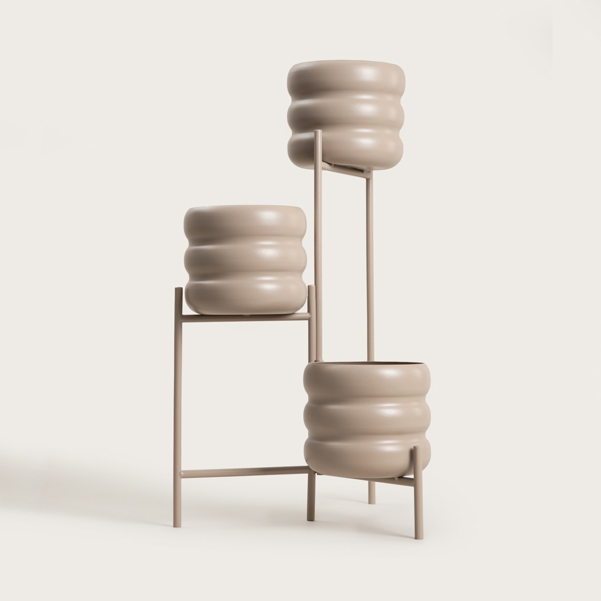 The BUUBLE triple beige metal flowerbed 36x25x60 cm is durable and stable. Careful powder coating increases resistance to daily use and enhances the elegant appearance of the flowerbed.