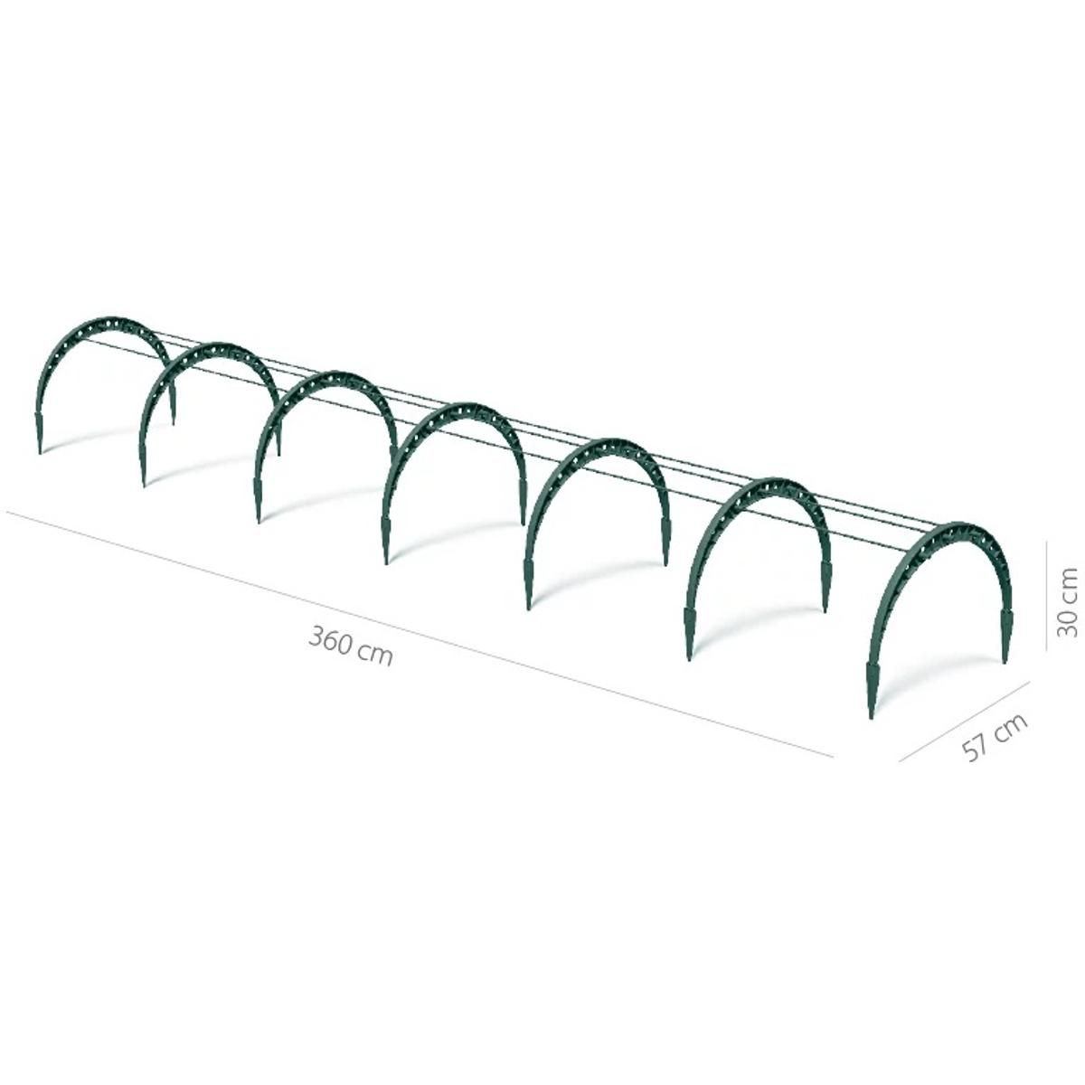 FLOO 360CM GREEN FLOOD TUNEL is an ideal solution for gardeners who want to take care of their plants in an efficient and professional way. Thanks to its compact dimensions (height 30 cm, width 57 cm), the tunnel is ideal for protecting seedlings, vegetables and flowers from unfavorable weather conditions such as wind, rain or cold.