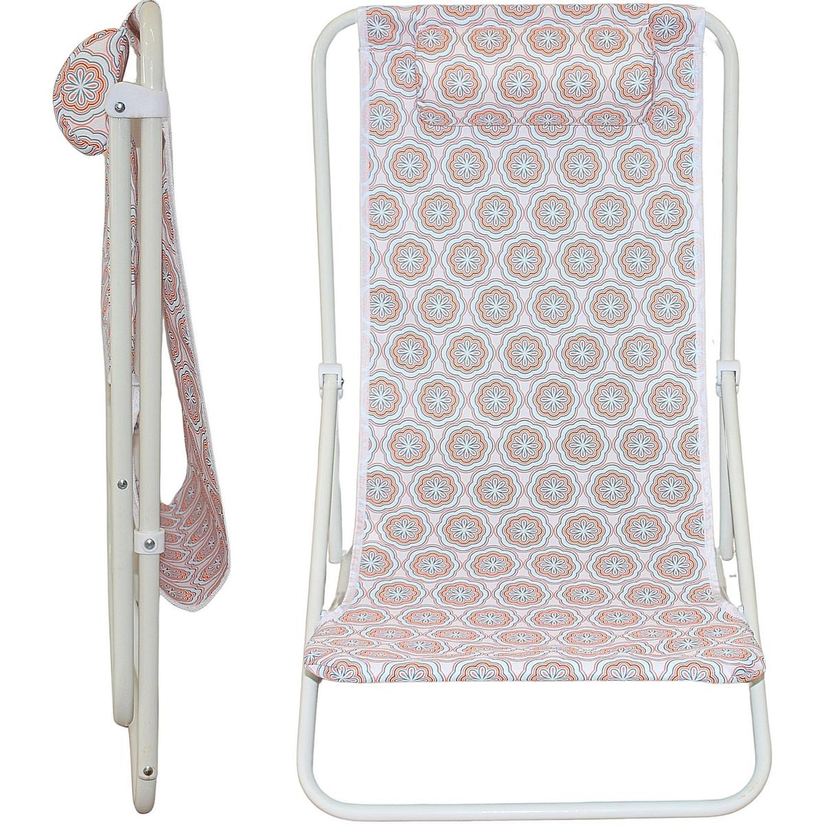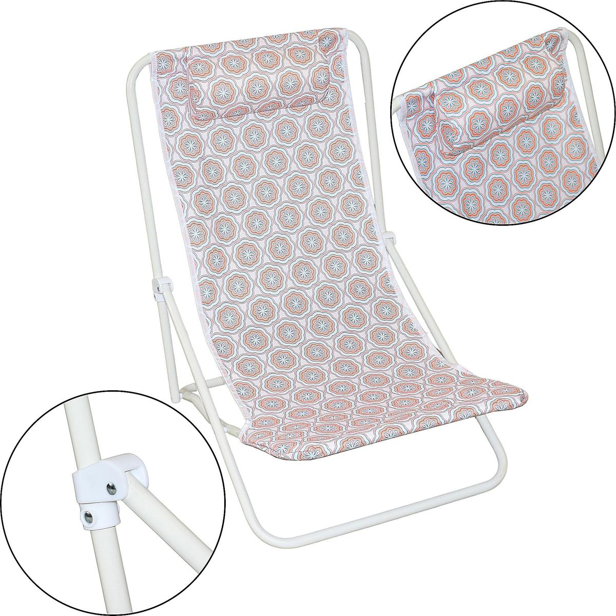 FOLDING PLAIN LANDSCAPE WITH HEADCAPE BLUE ORANGE is an ideal solution for holiday days. Equipped with a fixed headrest for added comfort and a sturdy folding design, it is perfect for the beach, allotment, balcony or camping. Its compact size when folded makes it easy to transport and store.