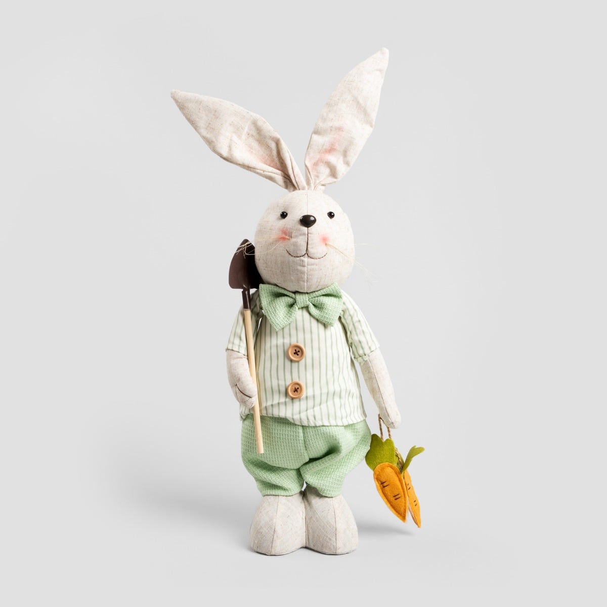 The JOLY rabbit is a unique decoration that will bring a cheerful, spring atmosphere to your home. Dressed in a green shirt, he holds a carrot and a spatula in his hands, which adds to his unique charm. Thanks to its height of 72 cm, it will be perfect as the centerpiece of an Easter composition on the table, dresser or by the window.