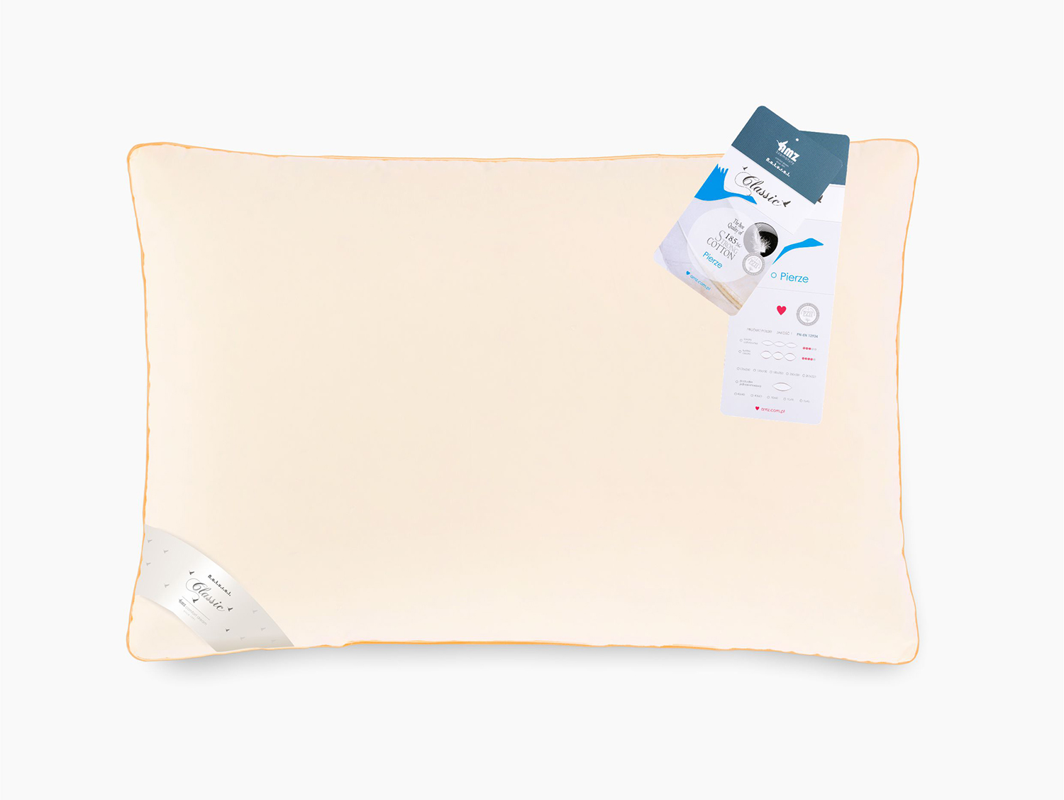 Products in the PIERZE line have been covered with inlet fabric with a weight of 185 g/m2. Such thickness of the fabric is a compromise between durability and comfort. The dense weave and inner apprette prevent the filling from getting outside. The quilts are quilted over their entire surface, preventing the filling from moving between the chambers. The finish of the quilts and pillows with biza additionally seals the filling and gives elegance. The products are available in ecru and pink colors. The goose feathers used for filling comforters and pillows have not been mechanically softened in any way. Strictly selected soft feathers give the products the appropriate springiness and lightness. The products retain their original qualities for a long period of use. The filling is safe for the user and meets European standards. It has gone through the entire technological process from washing in appropriate detergents through drying at high temperature and additional dust removal. The quilts and pillows were produced from certified materials.