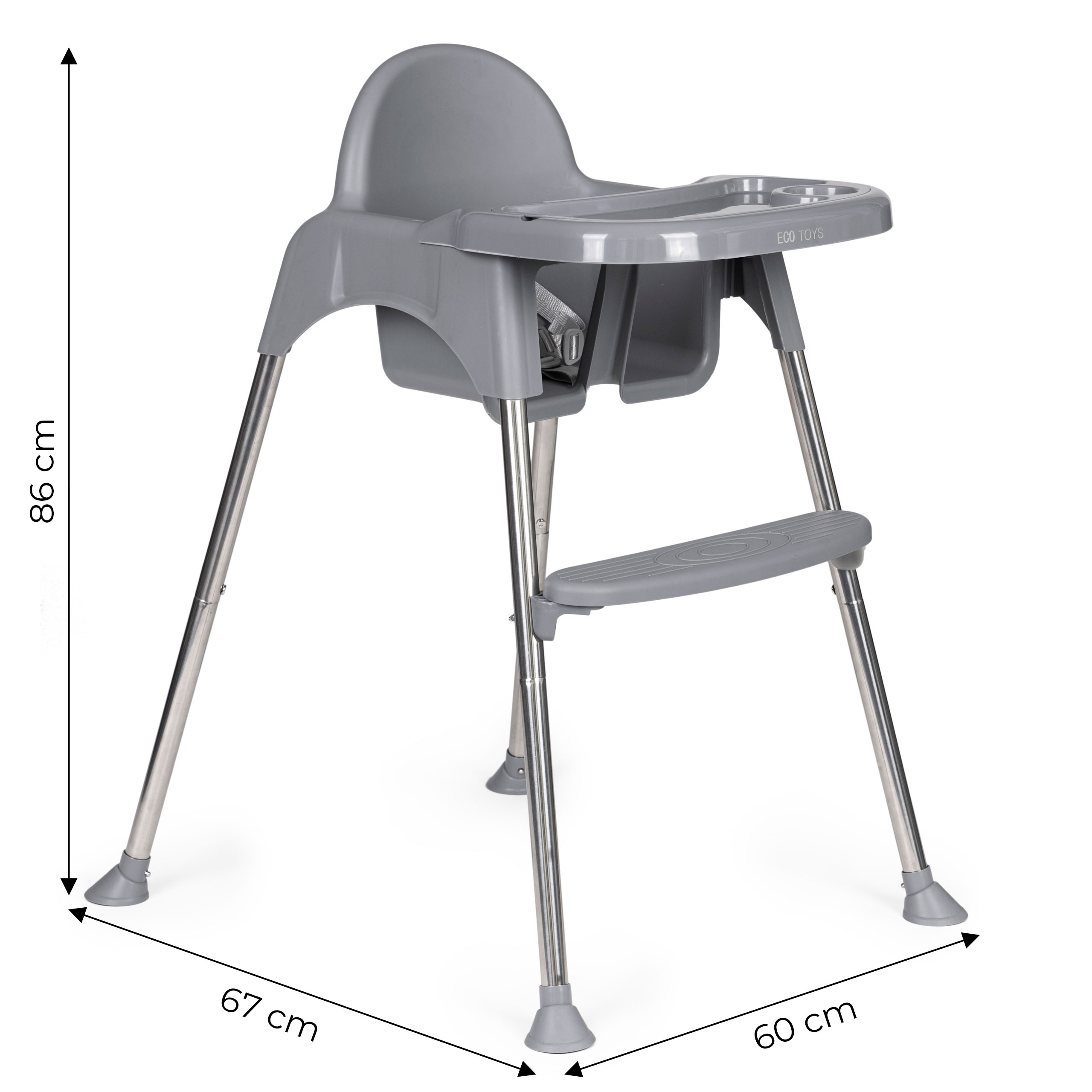 High Chair for Feeding 2-in-1 with Tray and Straps ECOTOYS