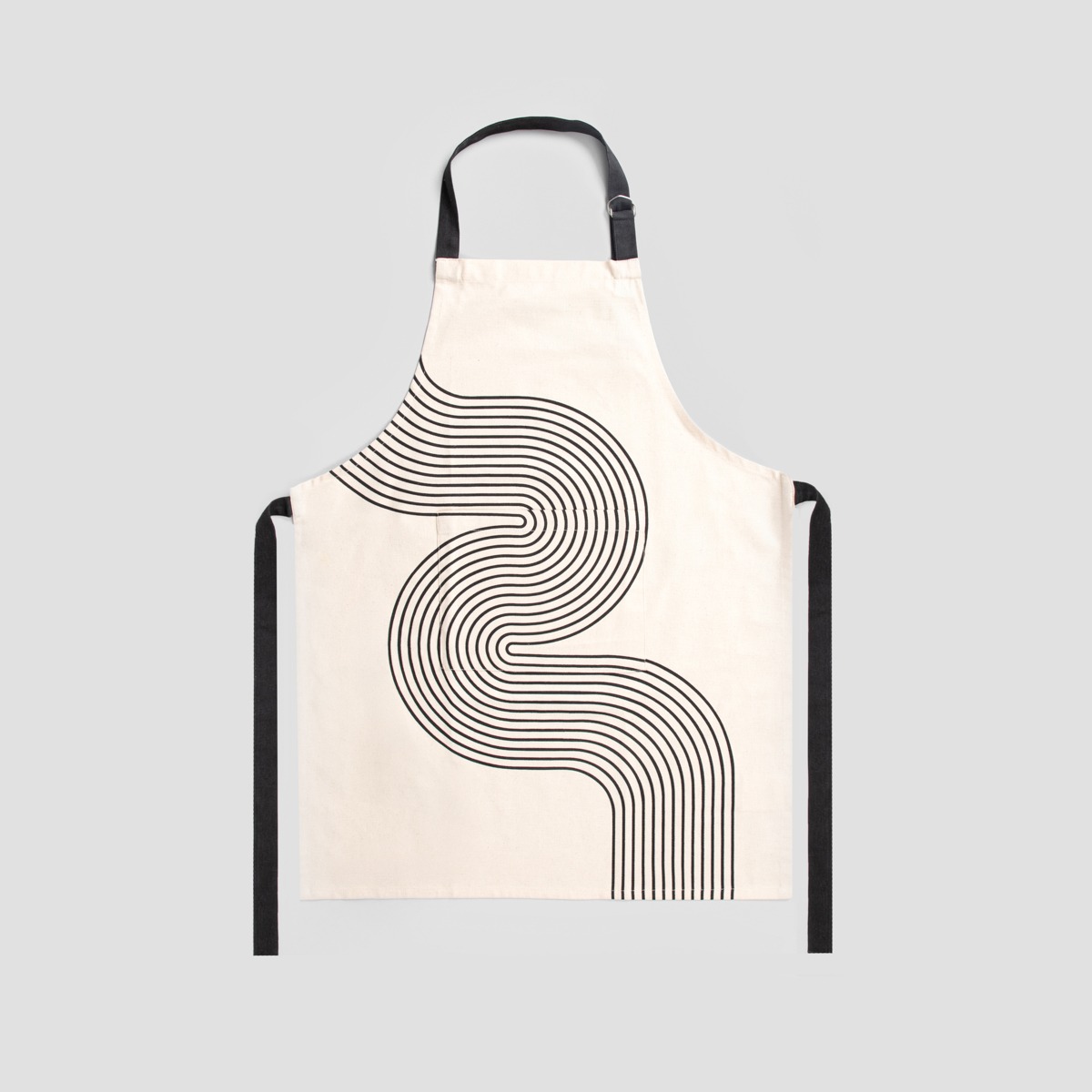 The CAREM kitchen apron combines functionality with a minimalist design. Its black geometric pattern on a light background gives it a unique character, while its universal cut makes it a perfect fit. It is the perfect choice for those who value both aesthetics and comfort when cooking.