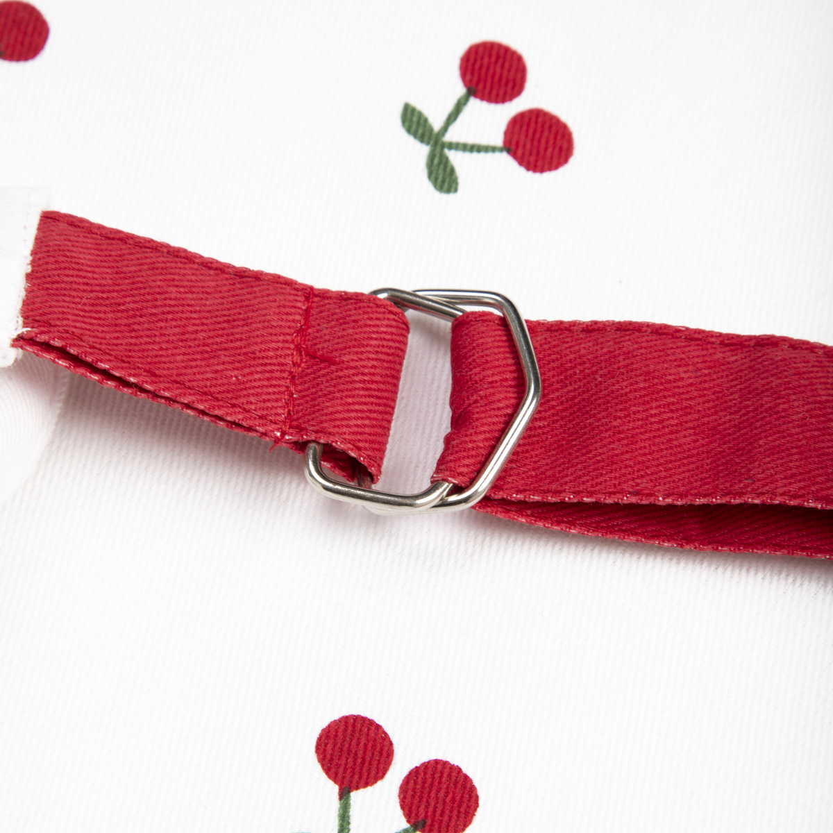 The CHERRINE apron steals hearts with its charming motif of cherries scattered on a white background, which catch the eye and add energy to every kitchen adventure. It is not only a protection for your clothes, but also a way to express your own style. Whether you are an amateur cook or an experienced chef, this apron is sure to add flavor to any kitchen activity.
