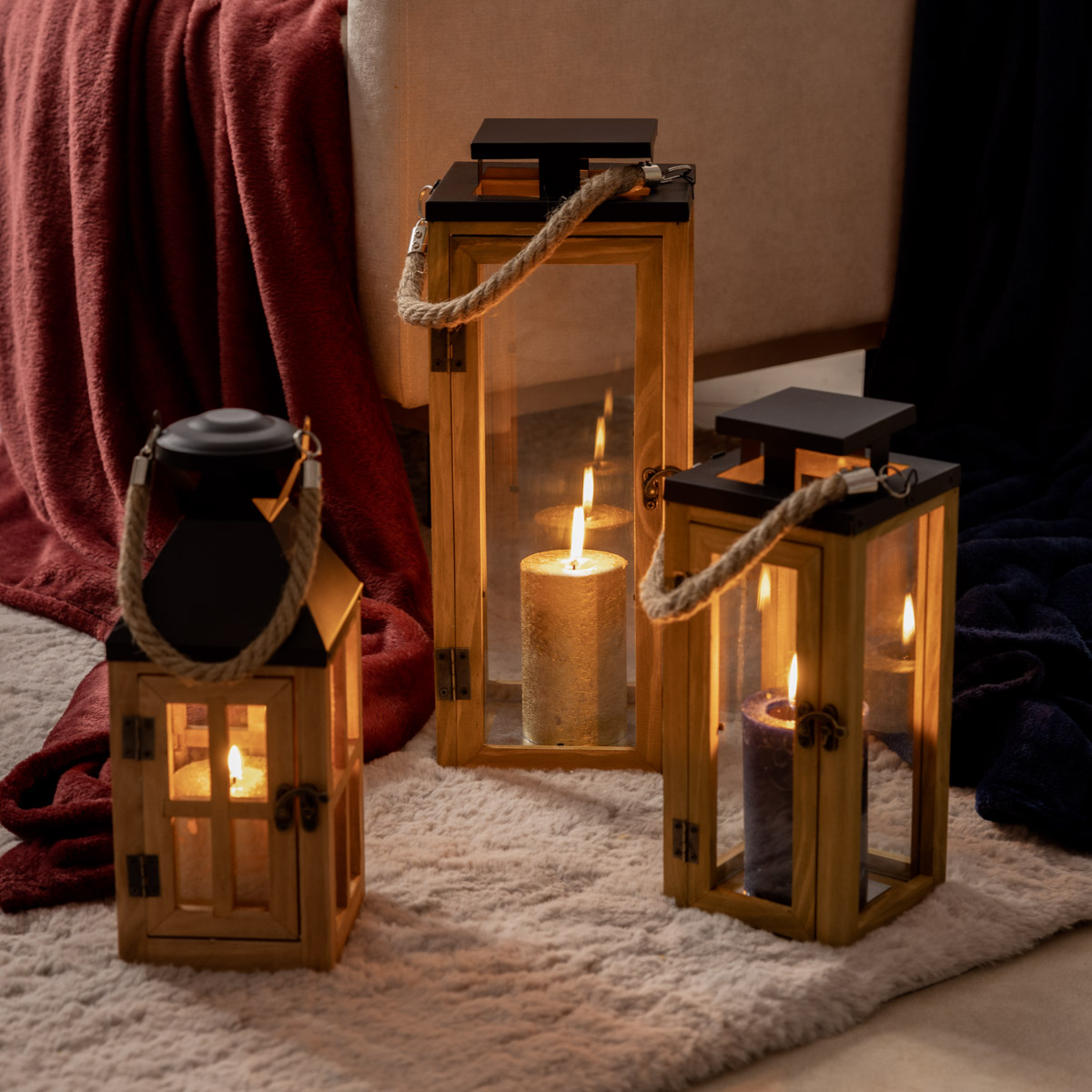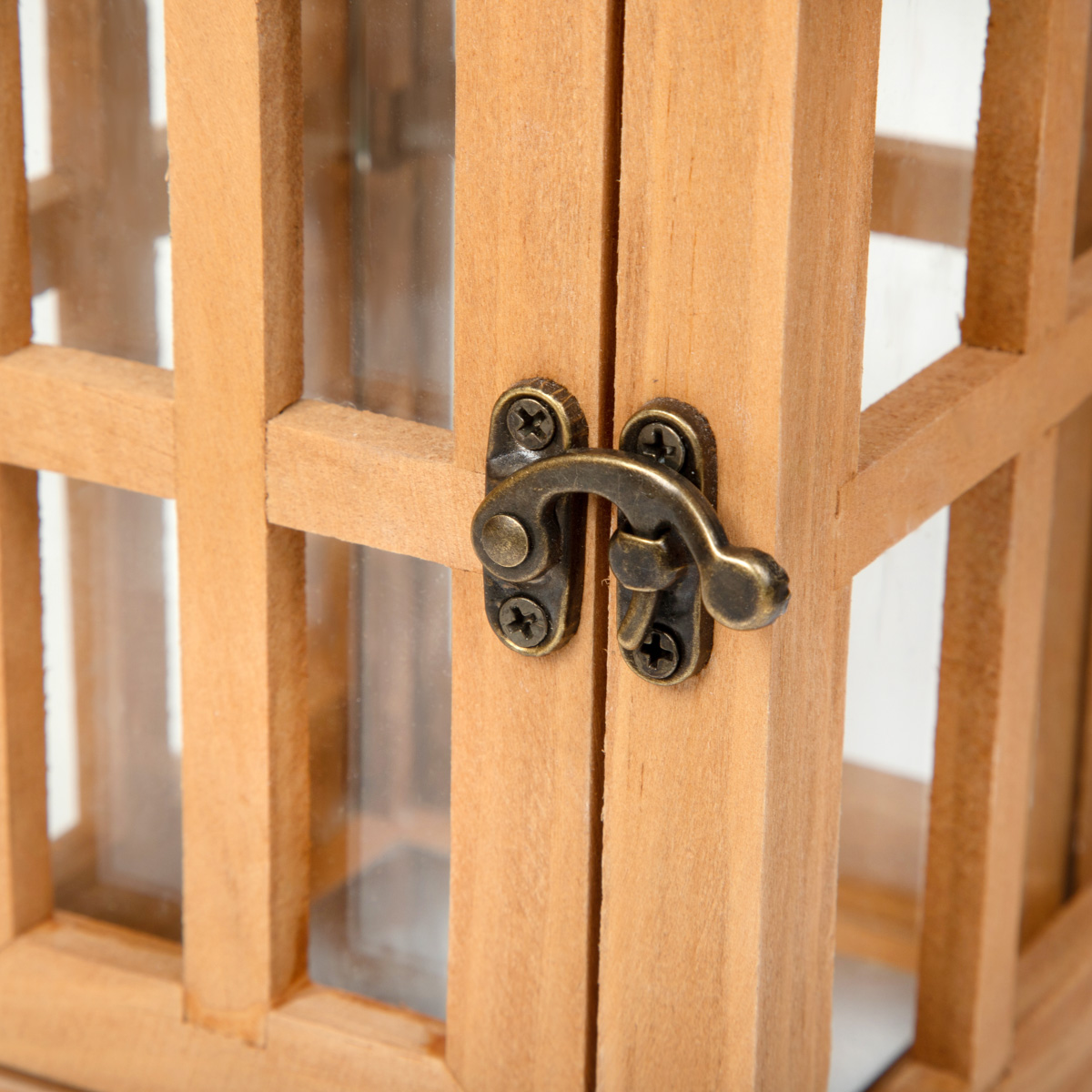 The frame of the product is made of high-quality wood, the glass panes are made of sturdy glass, and the upper part is made of metal. These are durable materials, strong and resistant to damage. The lantern will serve you for a long time!