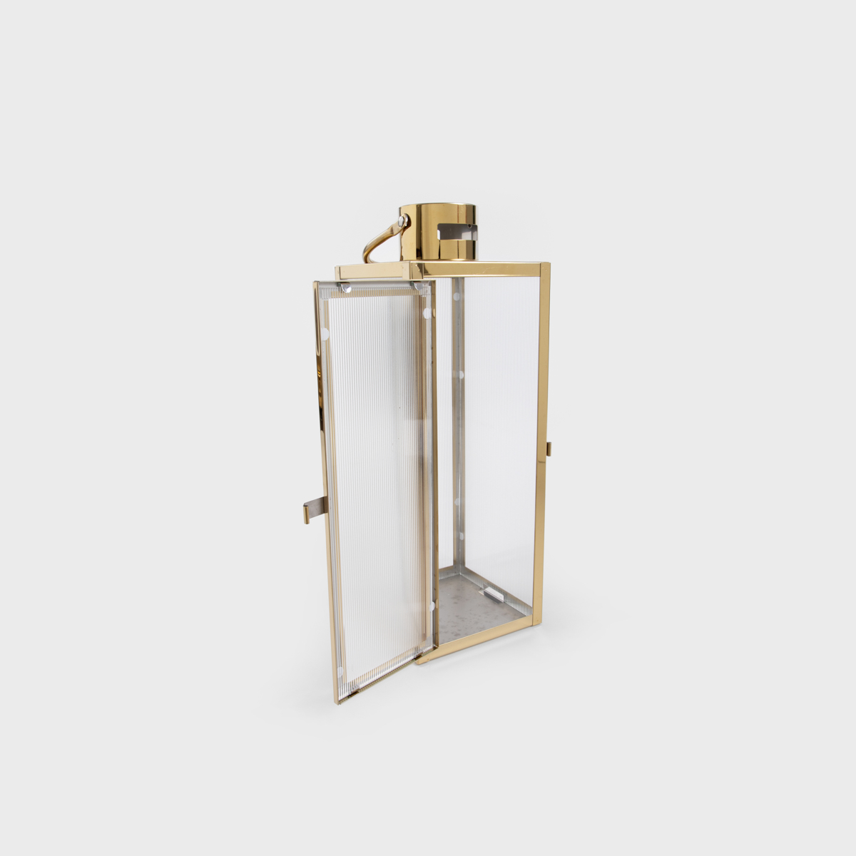 Lantern | TONDO | gold with striped glass | 14x14x39 cm | 705083