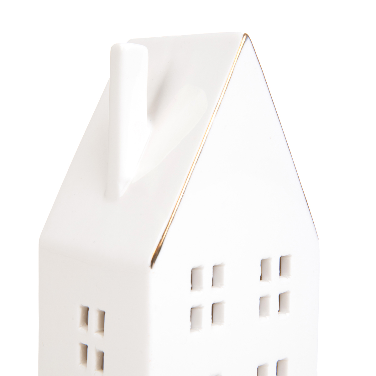 The luminous HOMLA KANIA house is a festive decoration that will create a unique atmosphere in your home. When the leds are switched on, a cosy glow comes out through the windows of the cottage, which brilliantly brightens up the space. The white ceramics have been decorated with subtle additions in the form of gold lines, which beautifully highlight the roof and door, adding elegance and style to the cottage.