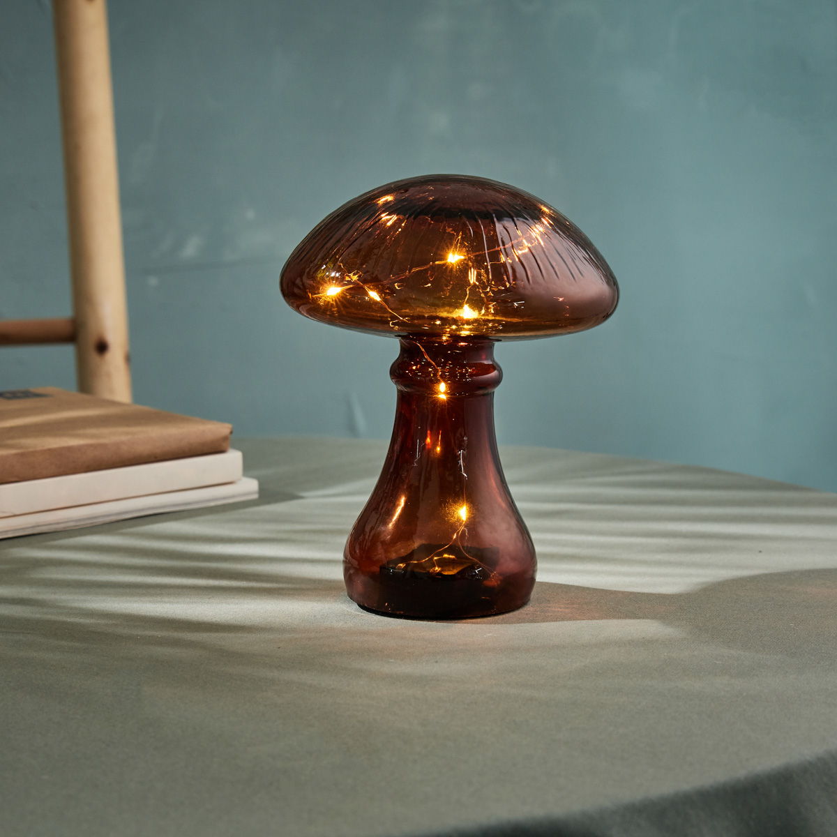 LED lantern AUTUMN AURA mushroom brown 13.5×18 cm