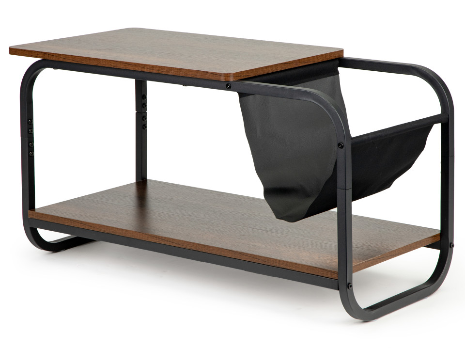 The table has a stable metal frame, powder-coated for durability. The tabletop and lower shelf are made of MDF and covered with a veneer imitating the color and texture of wood. The table is equipped with a magazine holder made of durable fabric, which will hold your favorite magazines.