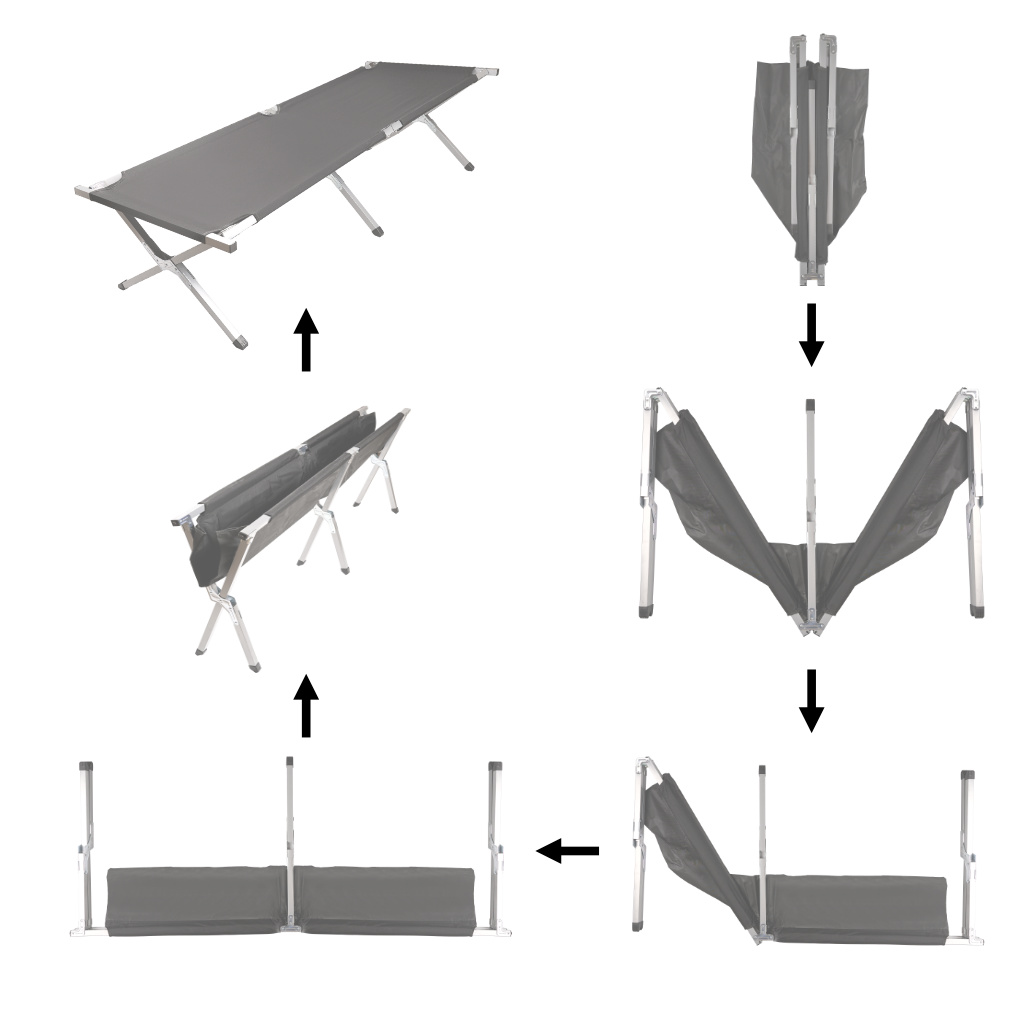 – Folding field bed – instant assembly and compact size