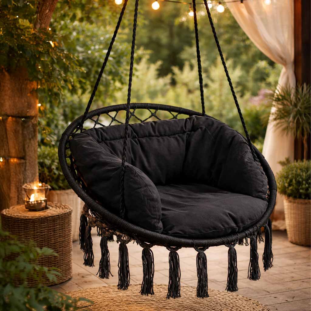 LUARO swing armchair stork’s nest with cushion black 80cm 150kg