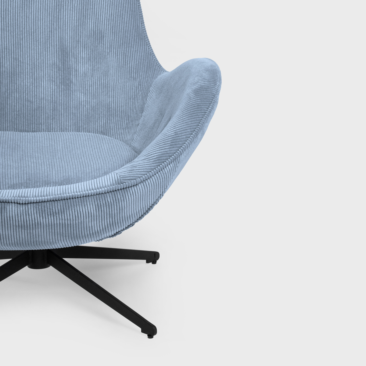 The armchair’s frame and base are made of metal. The softness is provided by polyurethane foam. For the upholstery, we used corduroy polyester fabric, which is durable and resistant to abrasion. The cushion that fills the seat is detachable, so you can easily clean it if it gets dirty.