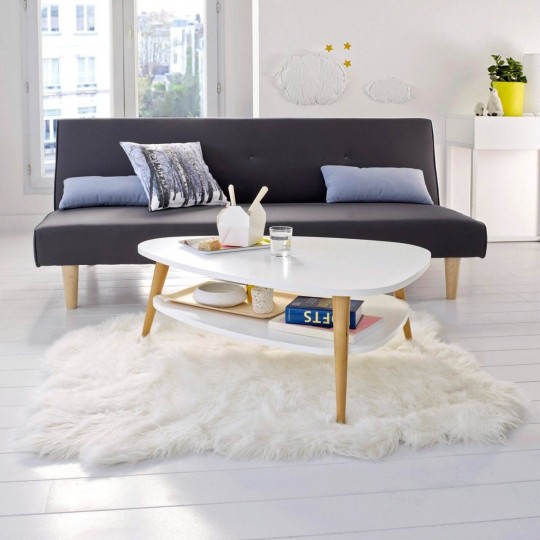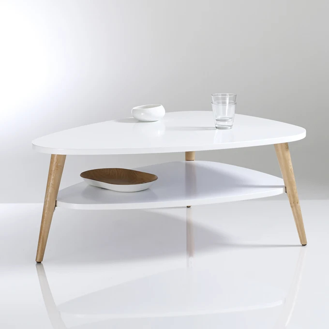 Modern coffee table, shelf, wooden legs, white, ModernHome