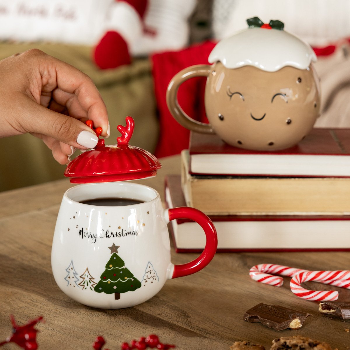 The mug will be a great decoration in the kitchen, dining room, living room or on your desk at work throughout the Christmas and New Year period. You can serve warm drinks in it, e.g. green tea, dried fruit compote or coffee. The lid will make your drink cool down more slowly than in an ordinary mug or cup.