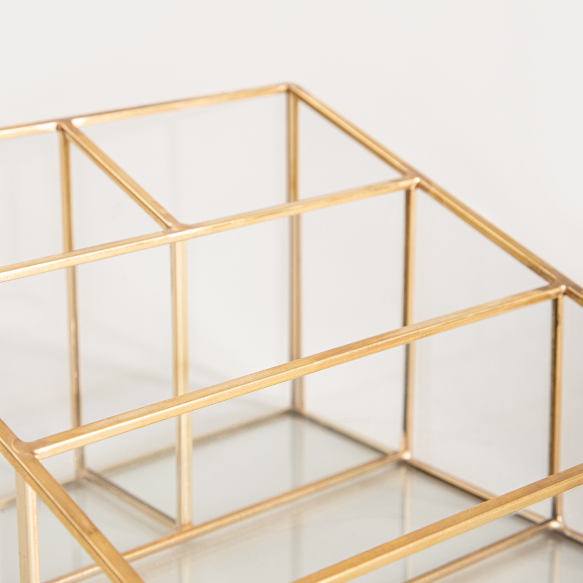 Glass organiser, gold 16 x 16 x 10 cm