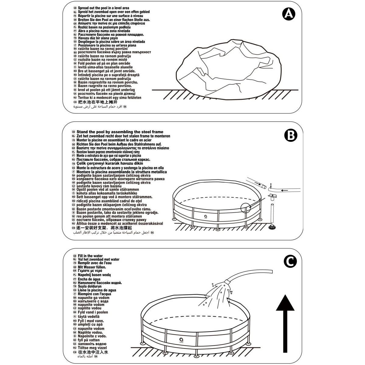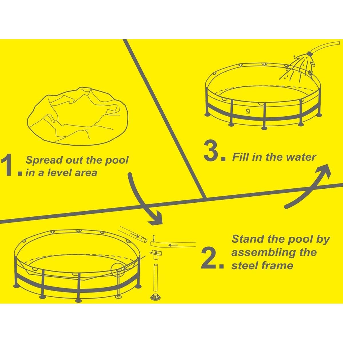 Assembly of the pool is extremely easy and does not require specialized tools. The steel frame and posts quickly assemble into a stable structure that ensures safety and convenience of use. Ready to fill with water in no time!