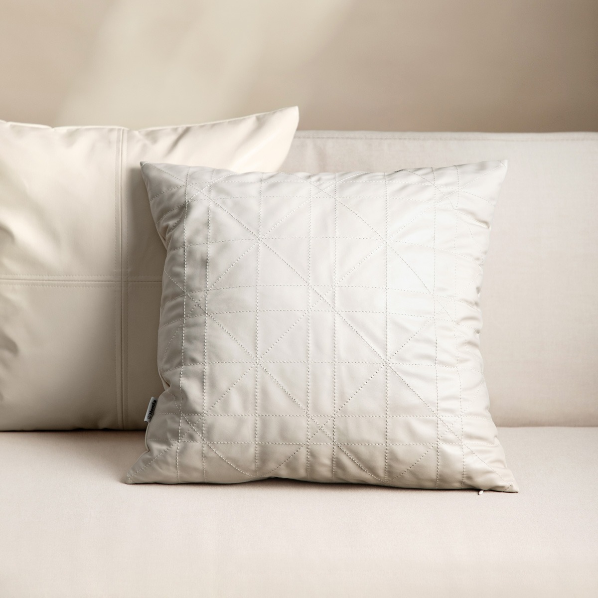 Pillowcase | GAVA | eco leather with decorative stitching ecru | 45x45cm | 749469Pillowcase | GAVA | eco leather with decorative stitching ecru | 45x45cm | 749469