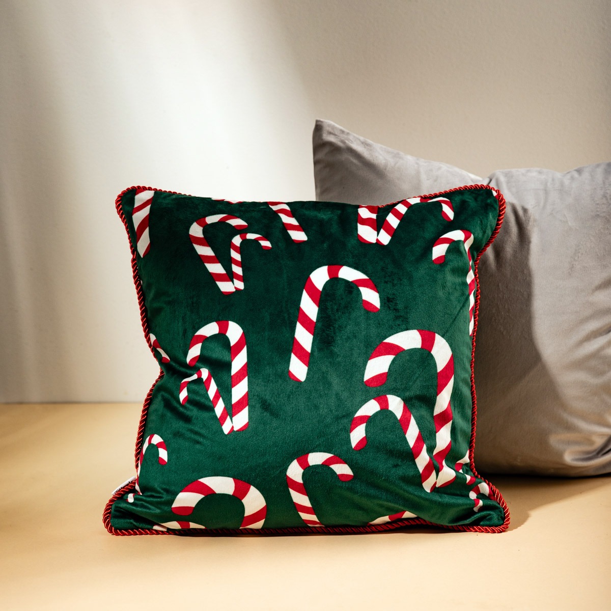 The INGRA pillowcase is a festive accent that will bring the magic of Christmas into your interior. Decorated with a charming candy cane motif on a dark green background, it fits perfectly into the Christmas aesthetic. The decorative red piping adds a distinctive and elegant touch, creating the perfect decoration for the festive season.