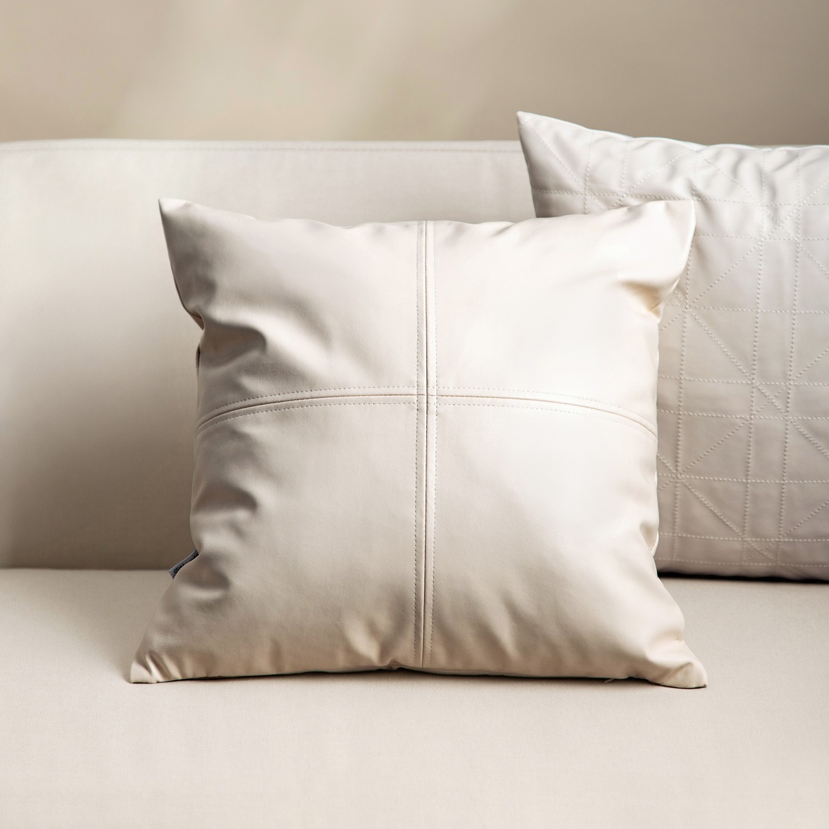 Looking for an elegant accessory to subtly accentuate your interior style? The IRVINE pillowcase in a light shade is the perfect choice. Its surface imitates leather, and the decorative stitching adds a modern touch. The light coloring brightens up the space and makes the whole look light and elegant.