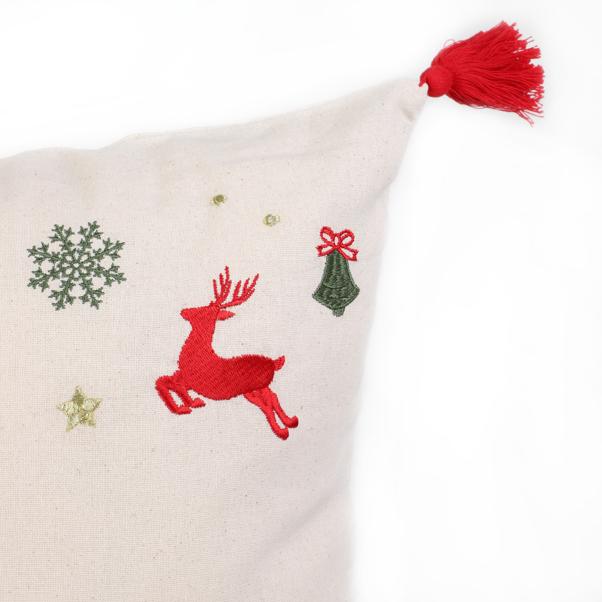The HOMLA MARAL cushion pillowcase delights with its charming pattern of reindeer and snowflakes. The embroidered motifs are arranged in the corners, which are further decorated with red tassels. It is perfect as an addition to your Christmas décor, and will allow you to rest your head comfortably in the evenings while relaxing on the sofa.