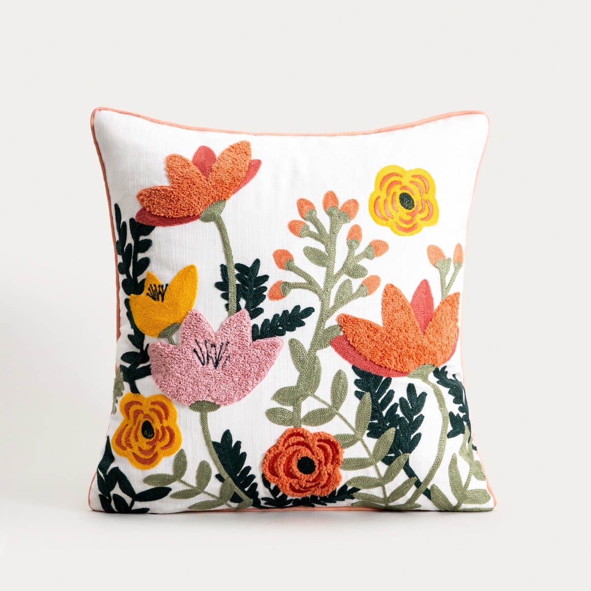 Cotton pillowcase with embroidered flowers 45 x 45 cm