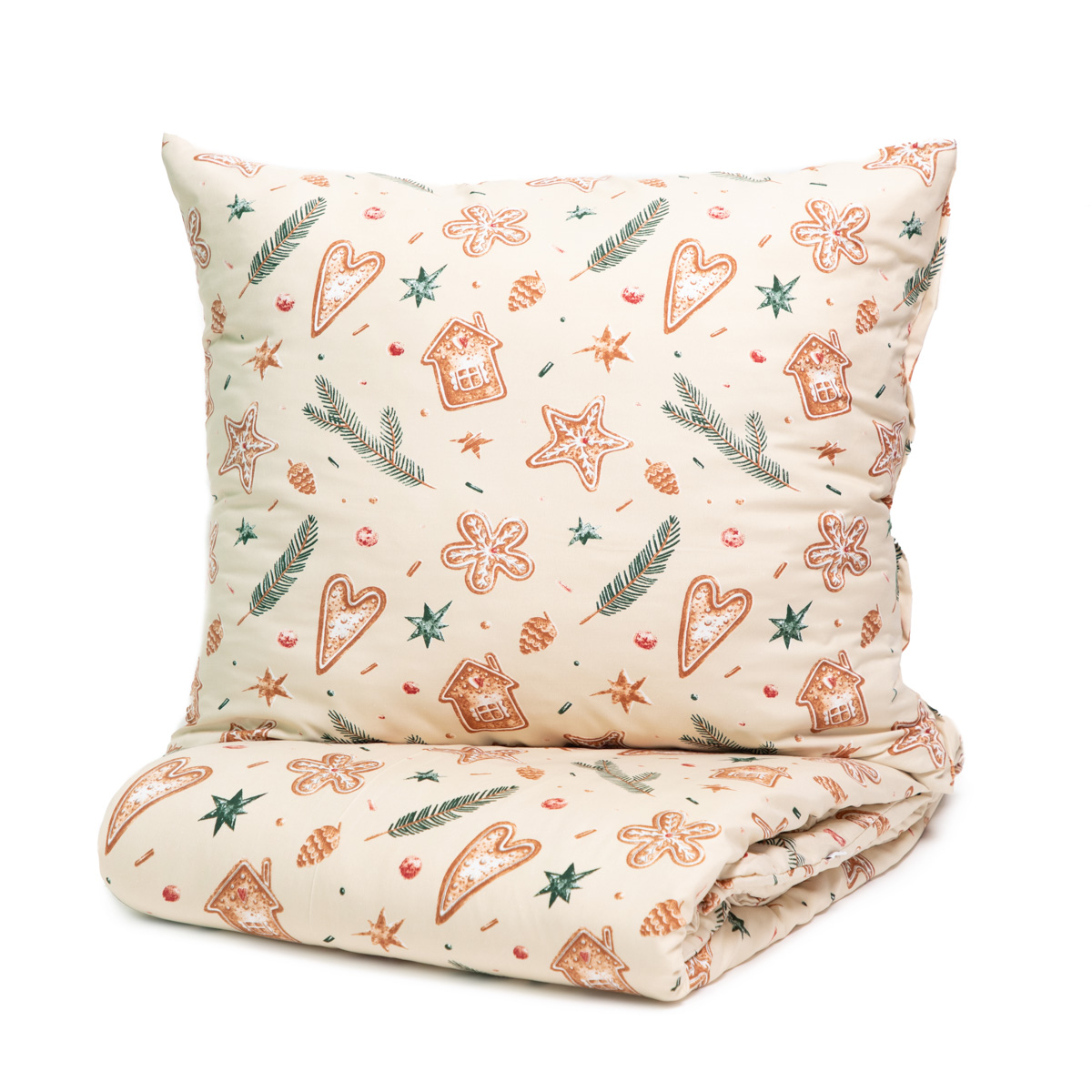 The charming ROSEMARY bedding set consists of a 160 x 200 cm duvet cover and two 70 x 80 cm pillowcases. Its pattern of sweet Christmas gingerbread, pinecones and stars creates a magical atmosphere that will instantly bring the Christmas spirit into the whole room.