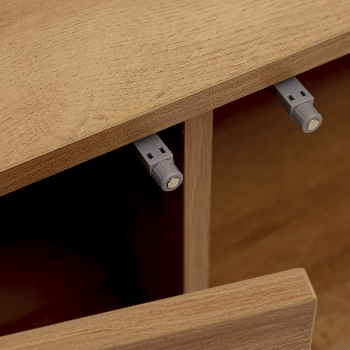 The HAGA RTV cabinet will be perfect as a piece of furniture for a TV set with a console, decoder or other electronic equipment. A music tower will also look great on it. Functional shelves will not only create space for storing smaller devices, but will also avoid a tangle of cables. Use the lockable cabinet to store documents, games, spare cables or other small items.