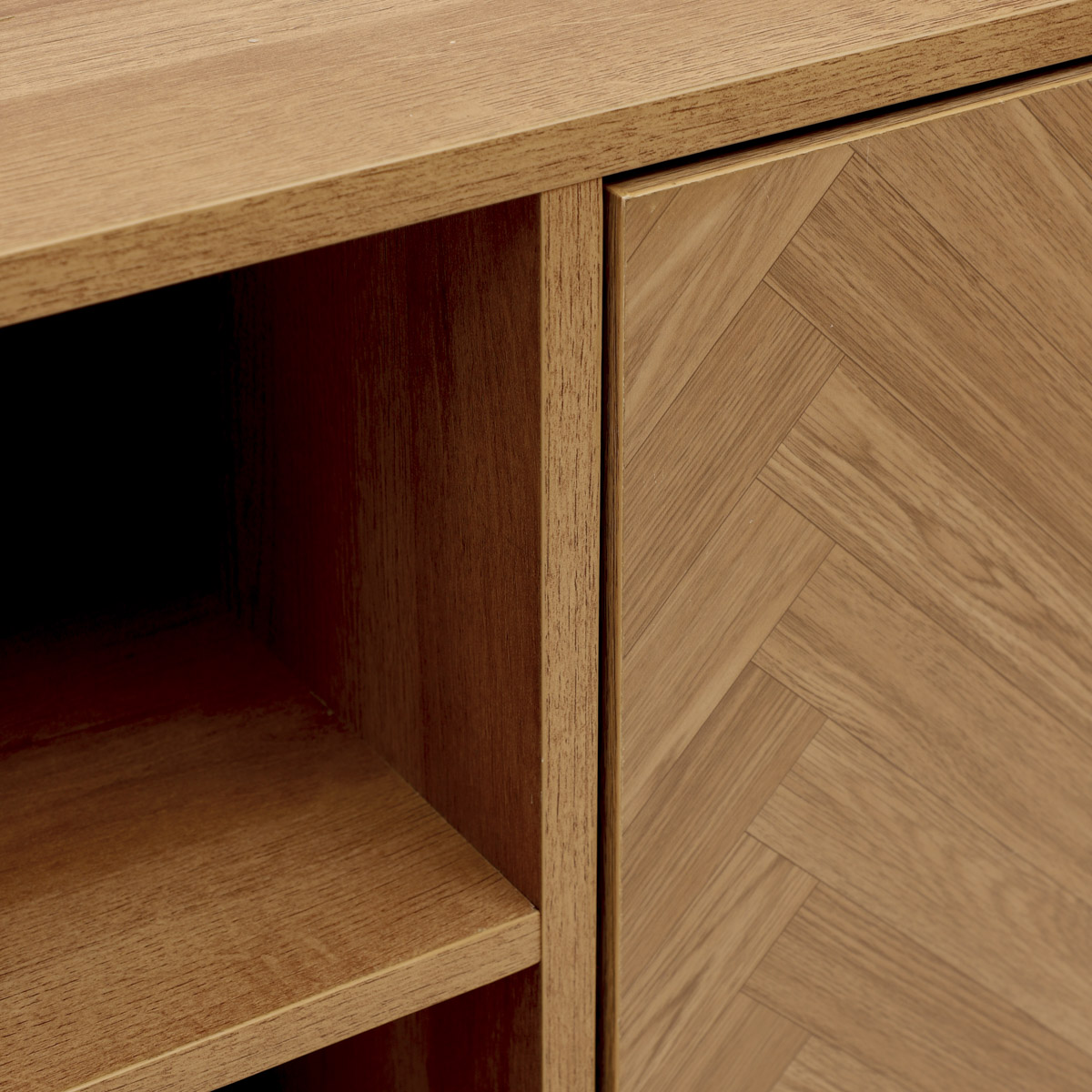 With the HOMLA SWEN TV cabinet, you will be able to display your TV and create additional storage space for all sorts of small items. The color of the furniture is natural wood, which is perfectly complemented by black metal legs. The minimalist design makes the cabinet fit perfectly into almost any interior, especially spaces inspired by Scandinavian, boho, modern or eclectic style.