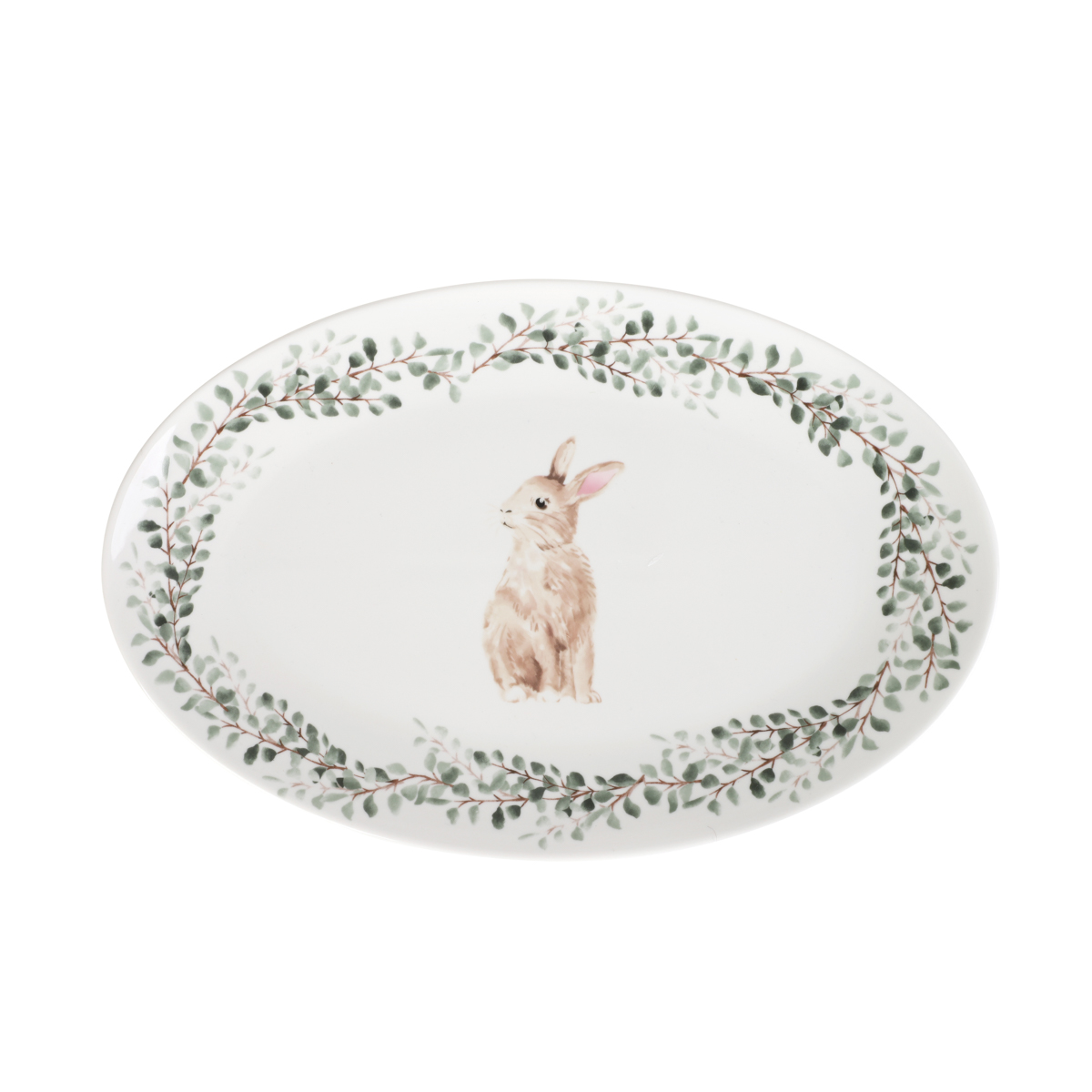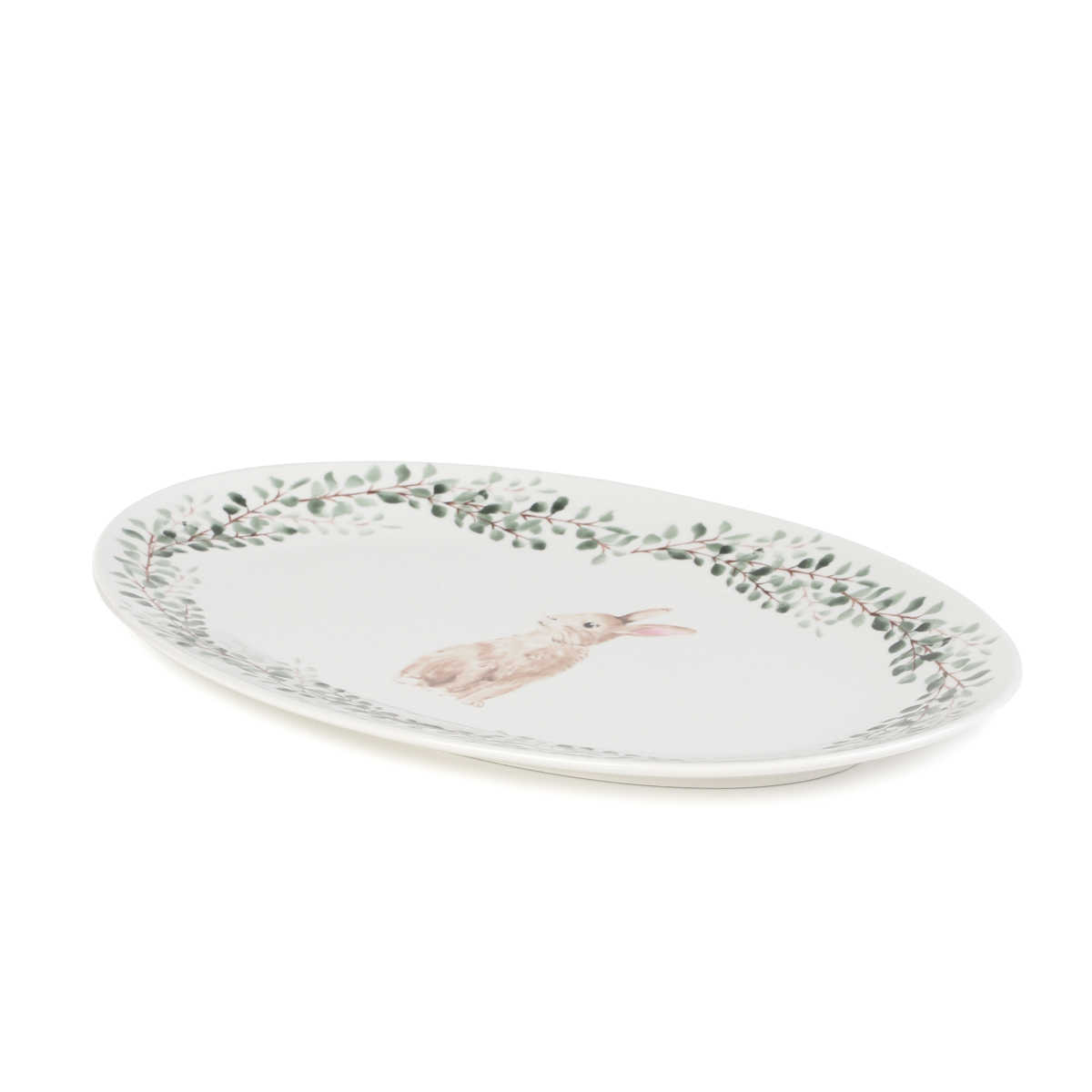 Easter is a time for joy and family gatherings around a festive table. The HOMLA SHEPER porcelain pl atter is made for a beautiful presentation of festive delicacies. The cute image of a bunny emphasizes the Easter atmosphere, while the delicate garland of green leaves brings springtime positive energy to the table. As a result, it will not only be a practical piece of tableware, but also a delightful addition to the table.