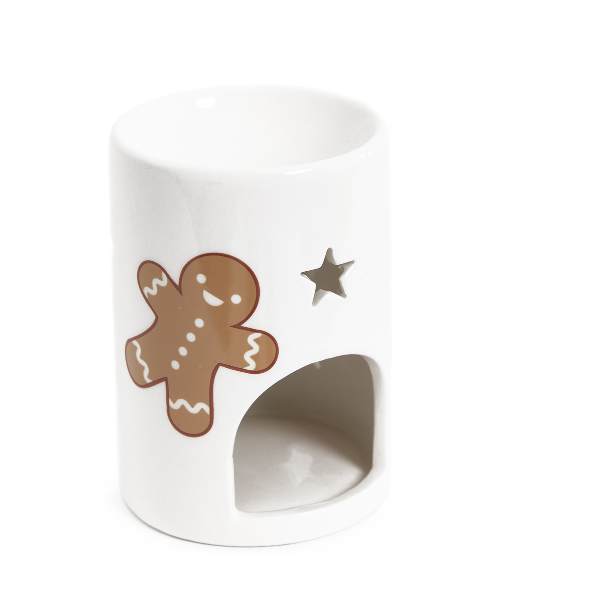 The BISCOTTO fireplace will make your Christmas gatherings with loved ones and moments of relaxation in the company of a good book and a cup of warm tea more pleasant. The ceramic walls are decorated with gingerbread men. Between the images of the cakes we have hollowed out the stars, through which the glow of the flame comes out beautifully. You can melt the included wax or another one in it, depending on what scent you want to surround yourself with at the moment.