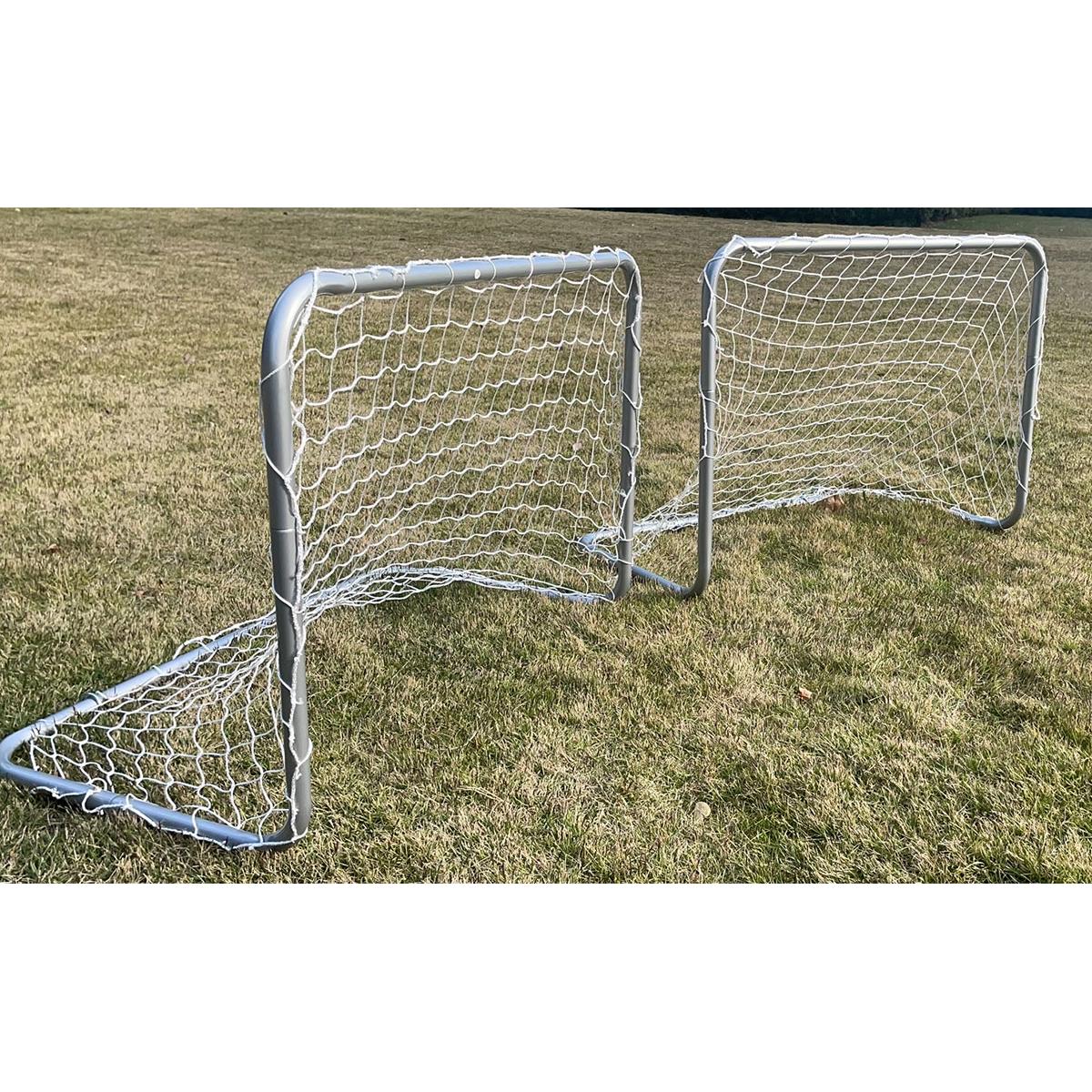 - Set includes 2 goals consisting of: tubes (8 pcs), nets (2 pcs), pegs (8 pcs ).