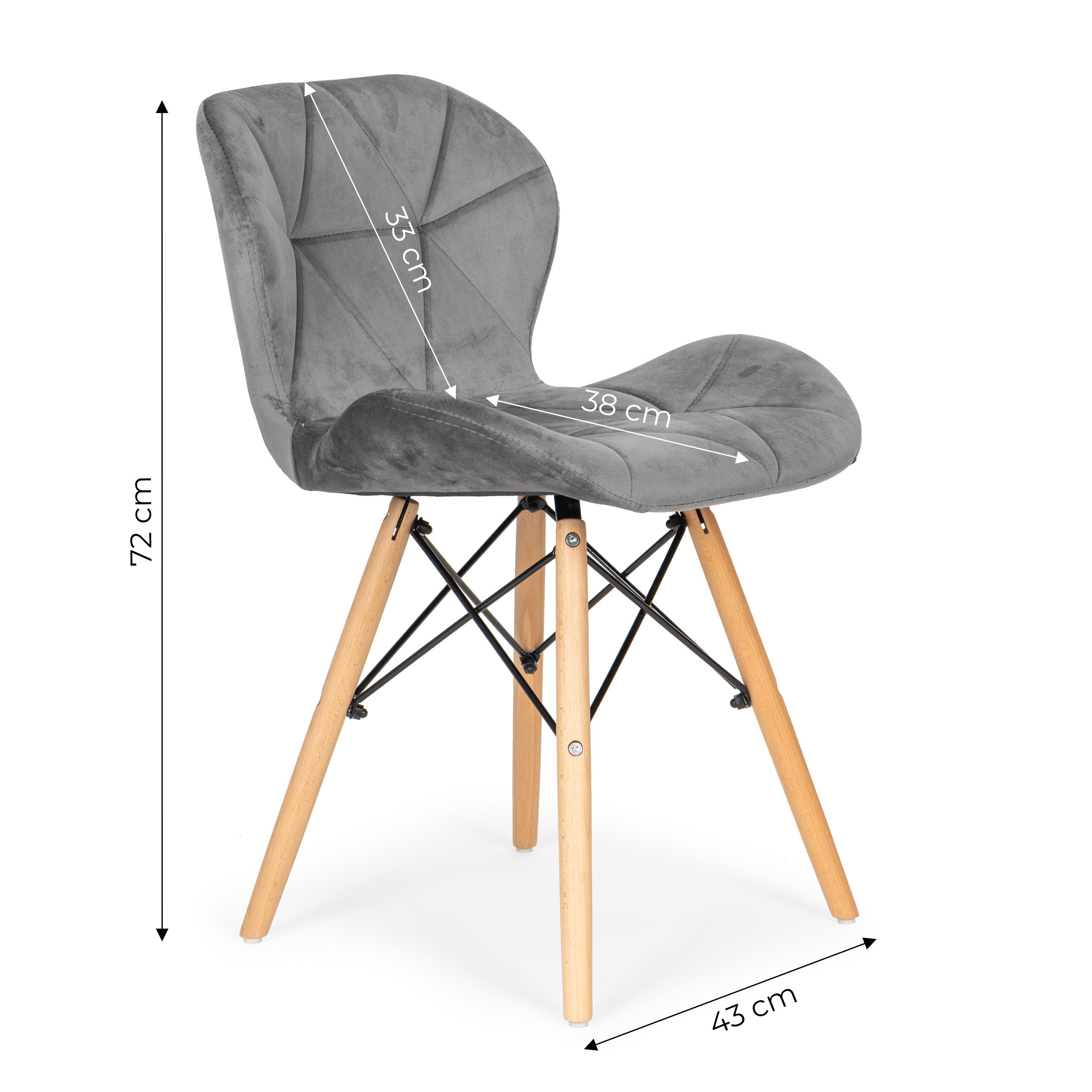 - Stability – despite their lightweight appearance, the chairs are strong and stable. Steel cross-frame and beech wood legs ensure comfort, durability, and safety