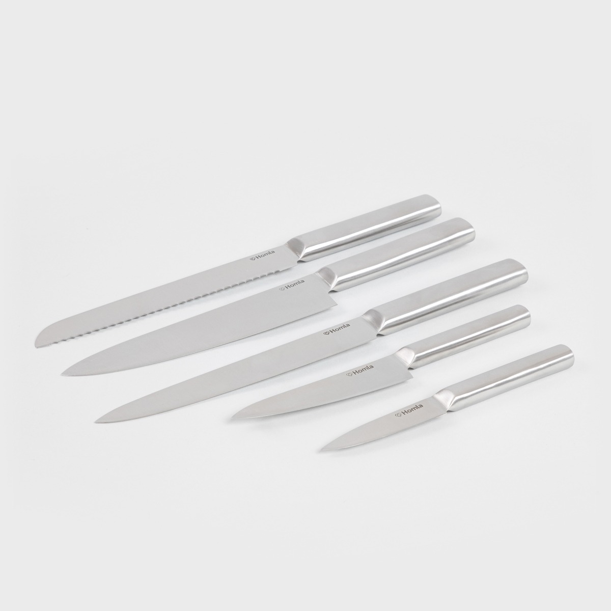 MASTERSET silver knife set in wooden block 6 el. Food contact product. Should be washed by hand.