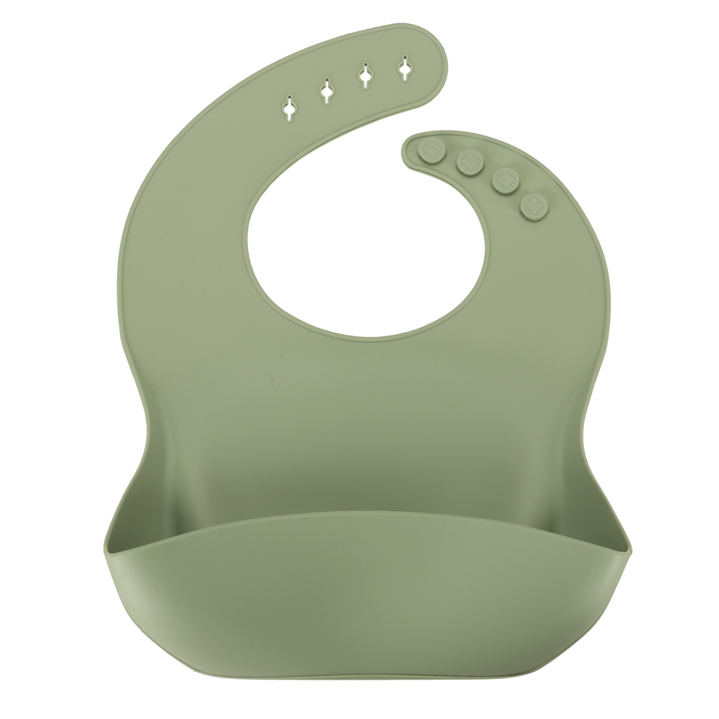 with a pocket for falling food, which protects clothes from dirt and makes cleaning up easier