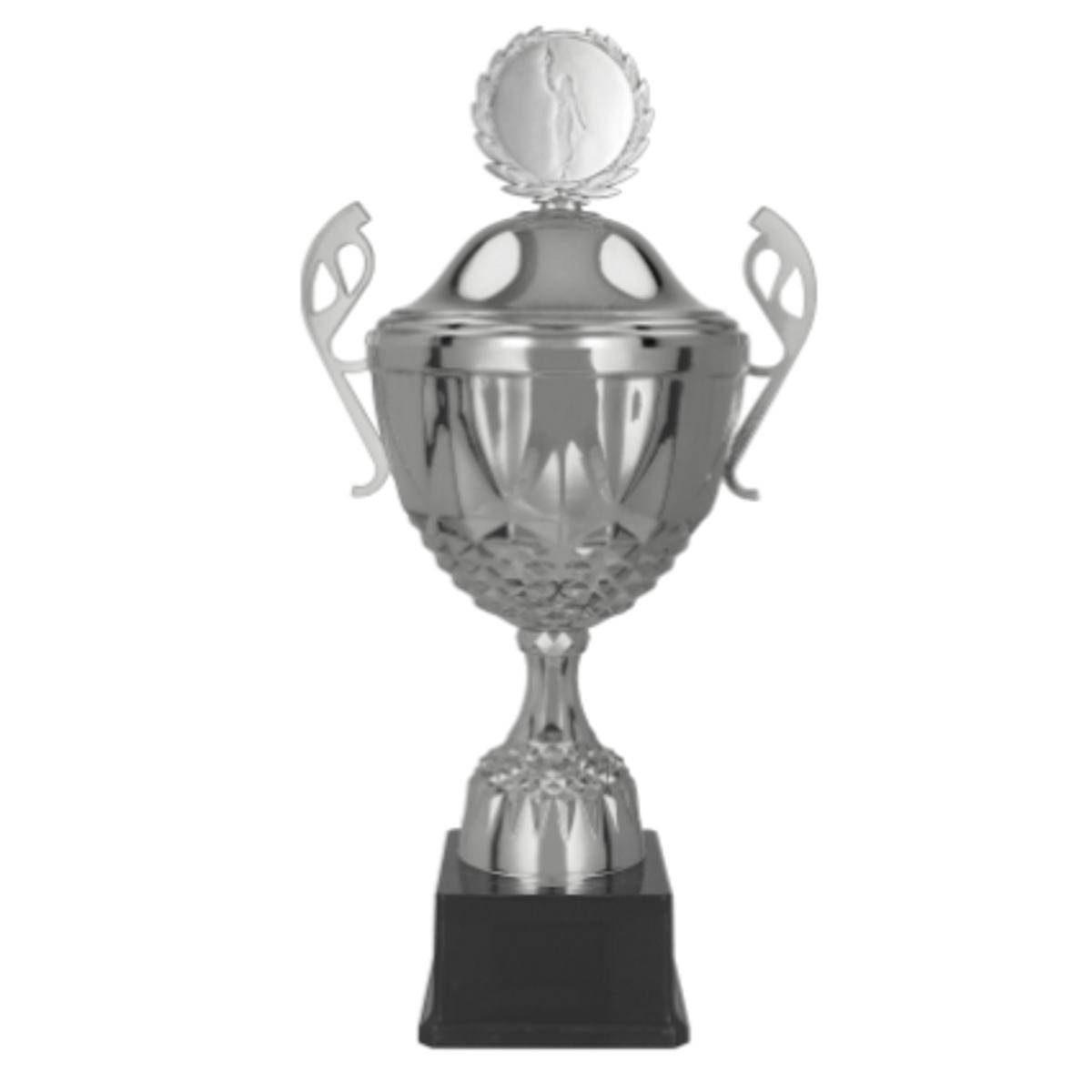 Silver metal cup with MUFAS lid, dimensions : H-42cm, R-140mm
