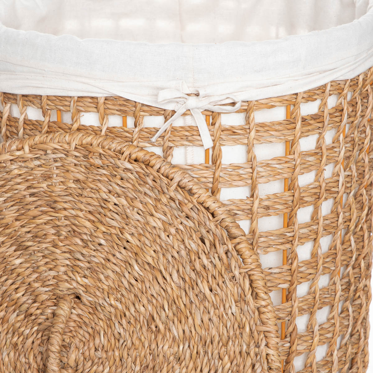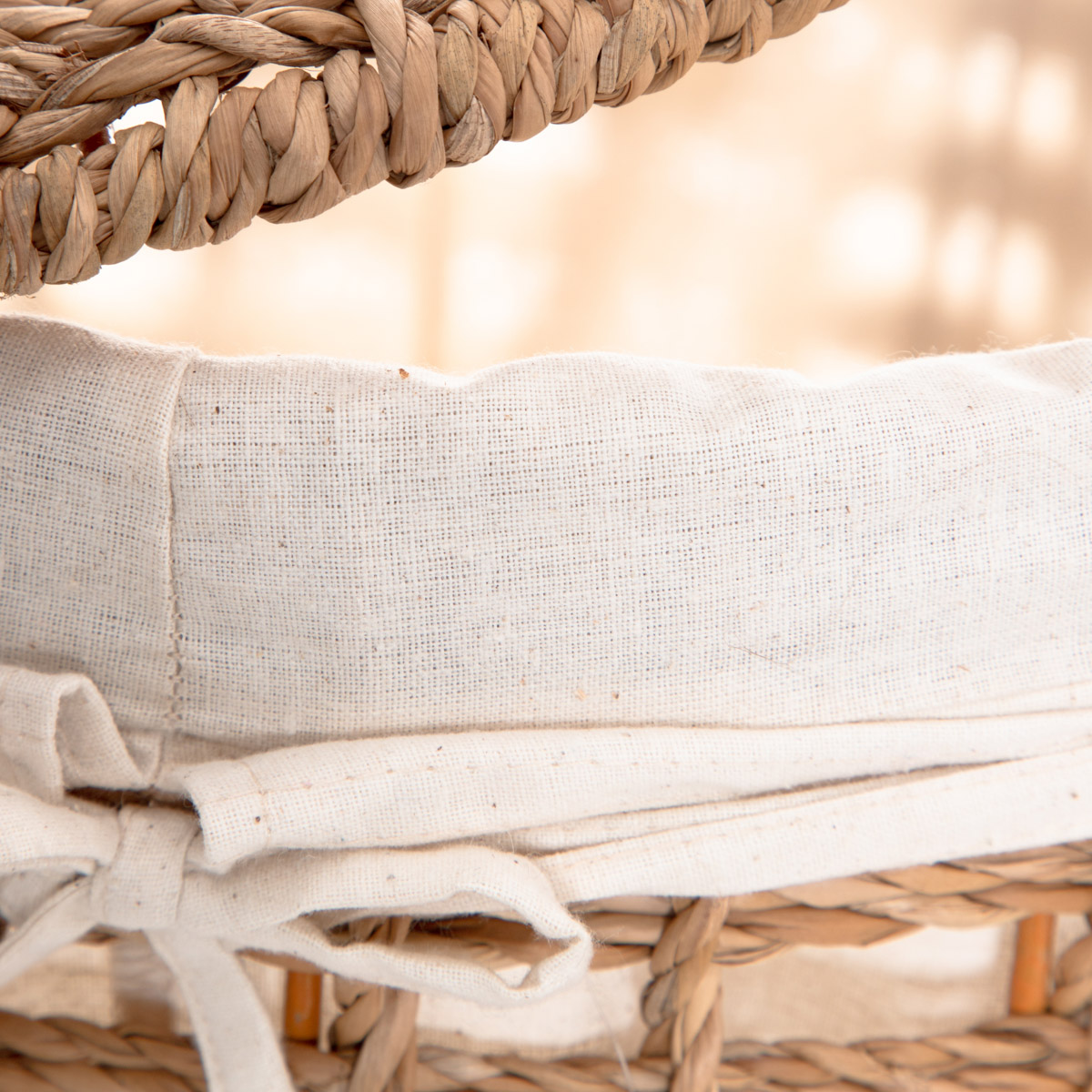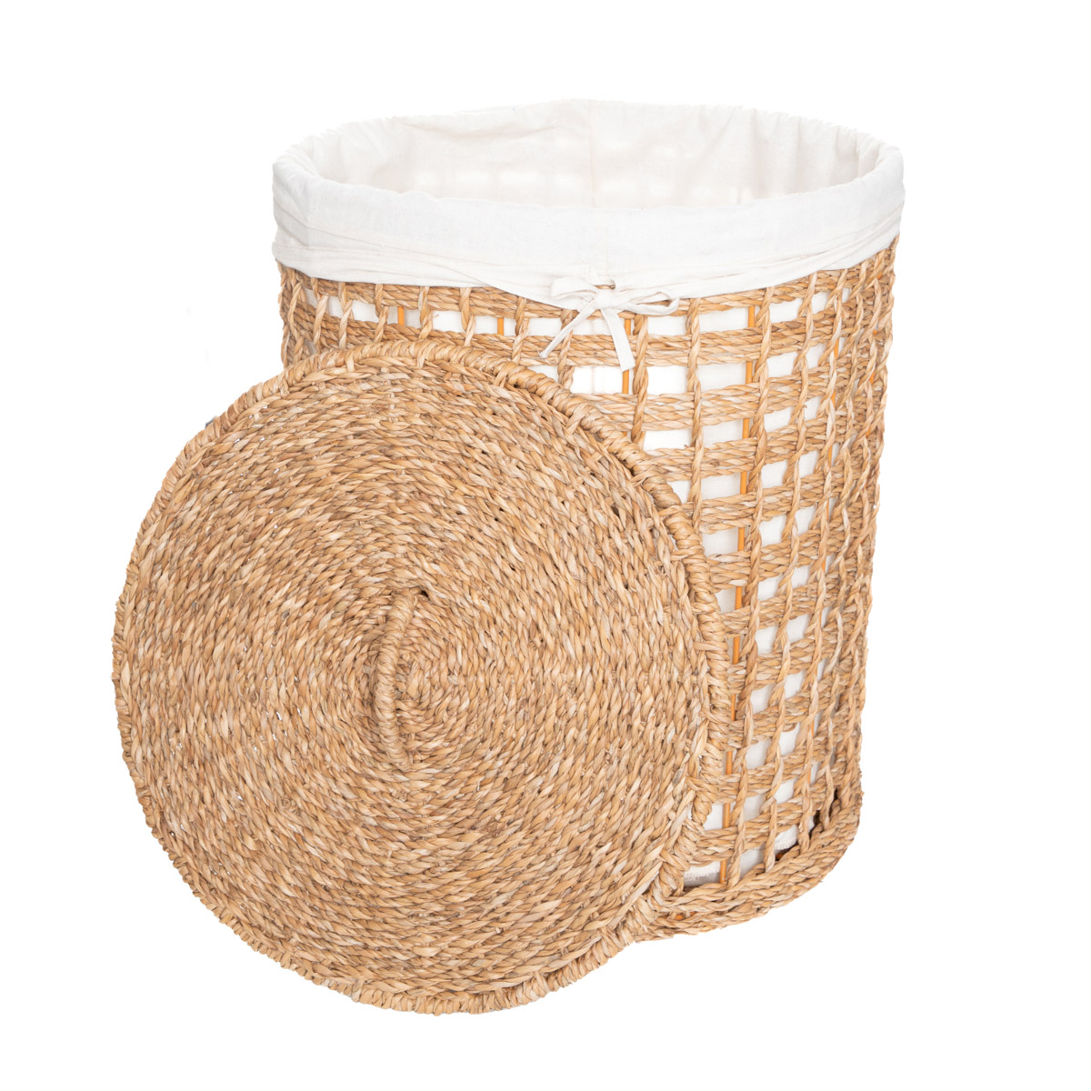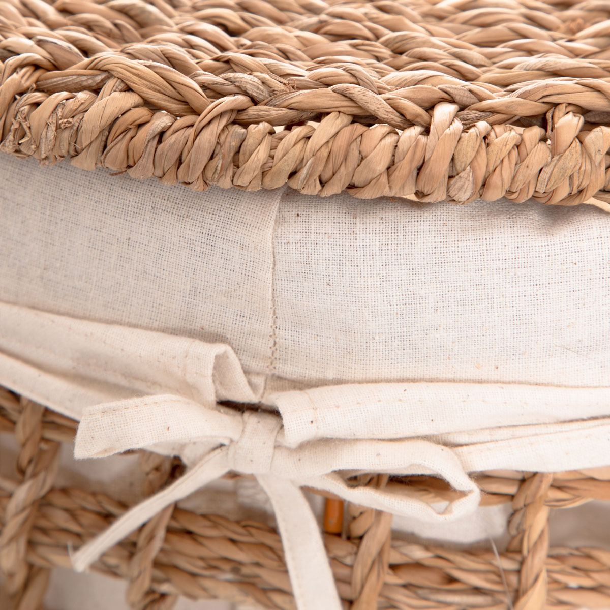 TheDENAHIstorage basket will blend in perfectly with warm, cosy interiors. The openwork body is lined with white fabric, which corresponds perfectly with the natural color of the seagrass and adds to the softness of the product. We have included a matching lid to effectively hide the contents of the basket, ensuring order and harmony in the room.