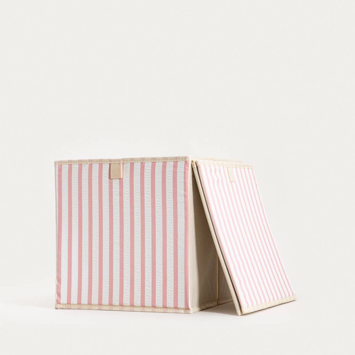 If you are looking for a practical way to organize your space, choose LINETA storage boxes. They help to keep your home tidy while also bringing a light, decorative touch to your interior. The subtle pattern of pink and white stripes gives them a fresh feel, making them look good on open shelves, in a wardrobe or in a children’s room.