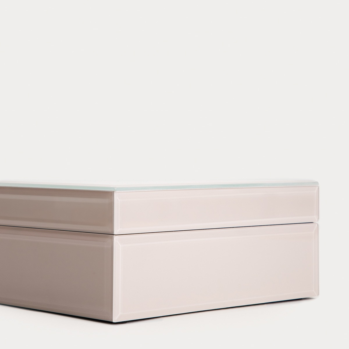 AERLA glass casket beige 19x15x8 cm is made of a combination of glass, polyester and MDF. The glass elements are responsible for the visual lightness, while the MDF construction ensures stability. The interior is finished with a soft textile material.