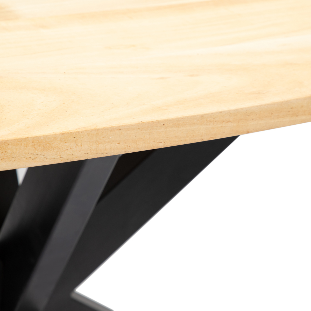 We made the table top from acacia wood, which is hard and durable. It is set on metal legs, making the table stable and comfortable for everyday use.